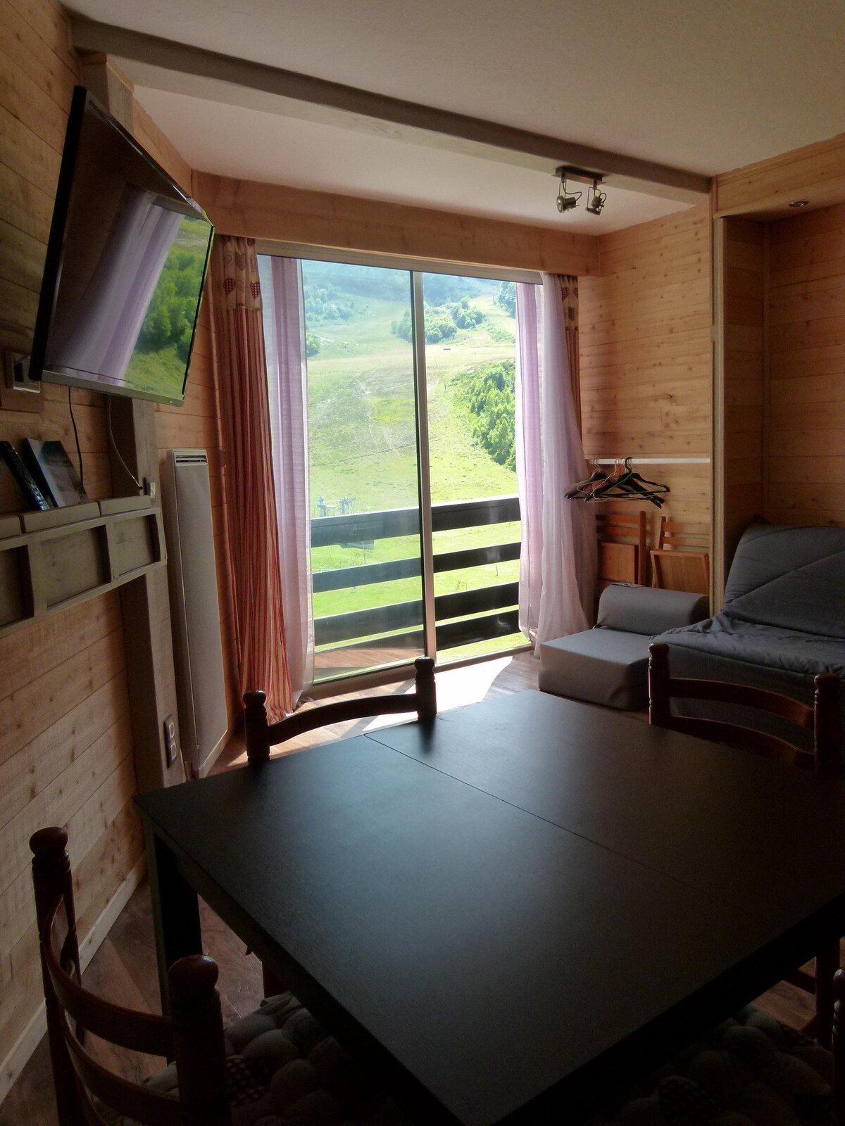 Monolocale cabina ristrutturato 11/2019, balcone chiuso e tapparella, 2 ° piano ascensore, splendida vista sulla valle. Al piano terra, commercio, bar, ristorante, affitto, ESF.. Piste ai piedi dell'edificio. NON FORNITI biancheria da casa, da letto, lenzuola, asciugamano, piumino. FORNITI: piumoni, coperte, cuscini, ripostigli. Prezzo a seconda del periodo+ conso EDF nell'inverno, lettura. Vacanze di fine anno, inverno, prenotazione settimanale. Negozio di alimentari aperto stagione sci, fuori stagione commercio nella valle. Parcheggio. Locale sci