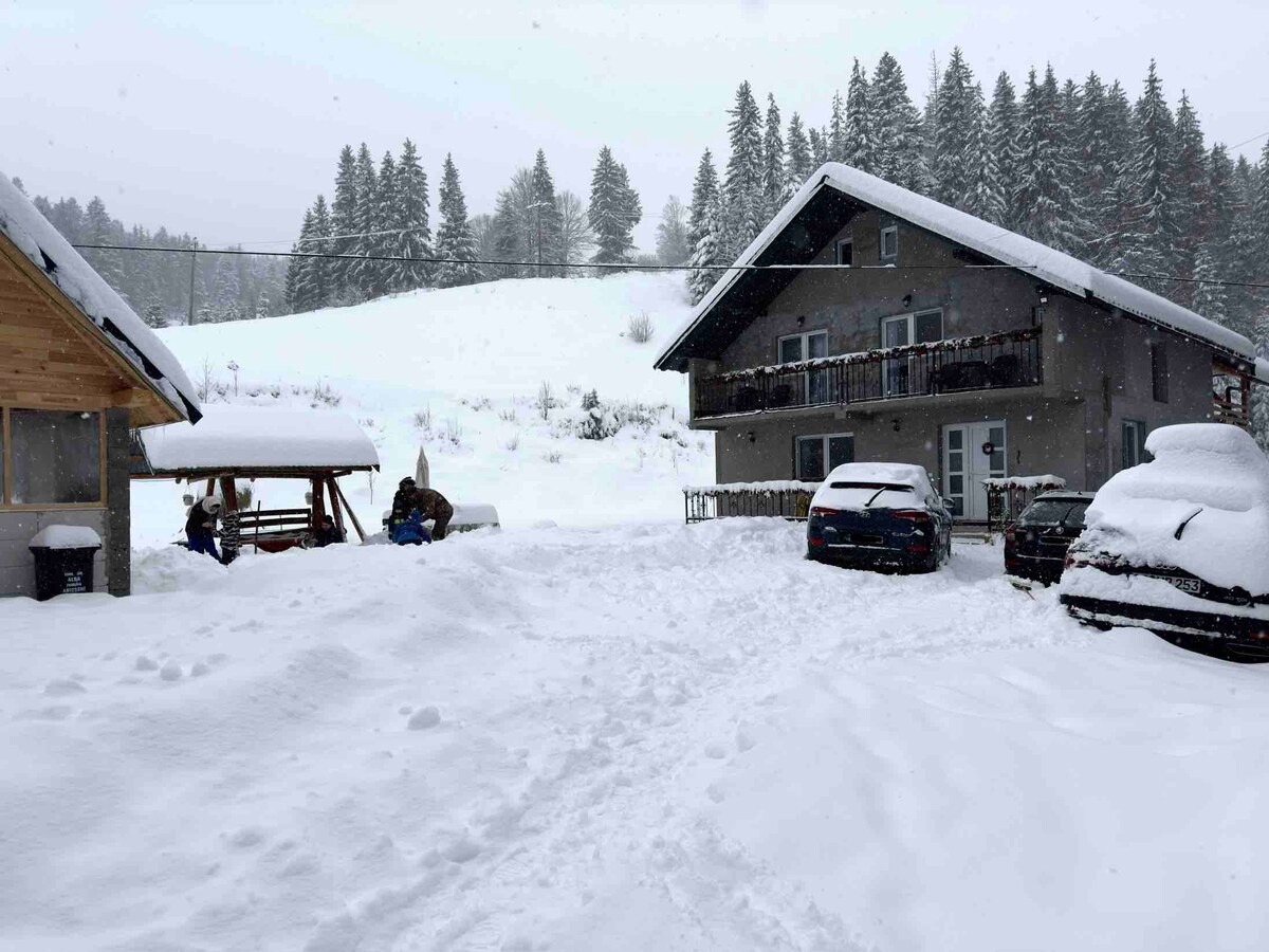 Rilassati con noi! Ti aspettiamo in un ambiente accogliente e tranquillo ai margini della foresta, lontano dalla folla e dai tumulti quotidiani! Il cottage è stato inaugurato nel 2019, vicino alle piste da sci, oltre a diverse attrazioni turistiche dei Monti Apuseni. Mettiamo a disposizione 7 spaziose camere con bagno privato, salotto e cucina completamente attrezzata.