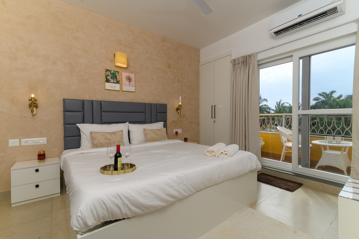 Luxury 1BHK Candolim | Beach Walk, Pool & Balcony