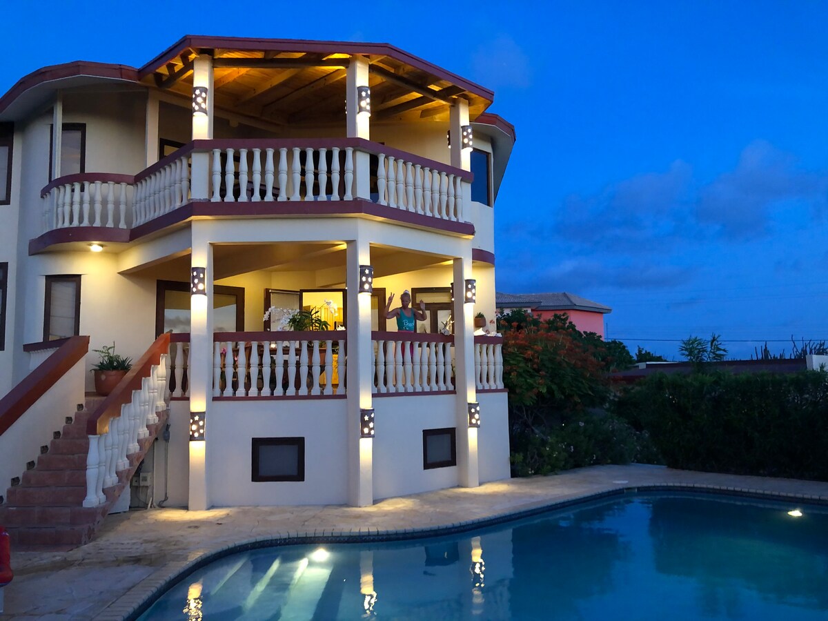 Rilassati in questo luogo tranquillo sulla bellissima isola di Aruba. Si trova in cima alla collina dell'Alto Vista, all'estremità settentrionale dell'isola. È tranquillo tranne che per il suono della natura. Confortevole e accogliente. Le opere di un'artista locale adornano le pareti. La cucina è spaziosa e lo spazio confortevole. Abbiamo una piscina nuova di zecca per il tuo piacere. Prendi un caffè o uno spuntino nella veranda sul retro. La cosa migliore è che si trova a 5 minuti di auto dalla spiaggia ed è proprio ciò di cui hai bisogno per una vacanza.