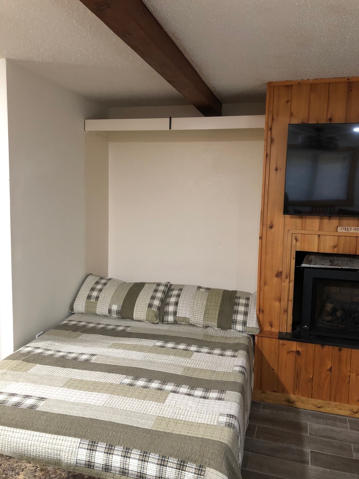 Due letti matrimoniali. Camera da letto soppalcata privata con lavabo, cassettiera e armadio. Cucina vera e propria con frigorifero, piano cottura e forno elettrici, forno a microonde, tostapane, macchina del caffè, stoviglie, pentole e padelle. Poltrone reclinabili abbinate di fronte alla TV da 65 pollici. L'alloggio si trova all'ultimo piano, all'estremità dell'edificio; la finestra del secondo piano si affaccia sulla tua auto, parcheggiata nel ben illuminato parcheggio, e sulle piste da sci del Big Powderhorn, dall'altra parte della strada. Un bagno con vasca/doccia. Illuminazione a LED diurna sui soffitti alti per rallegrare la tua giornata.