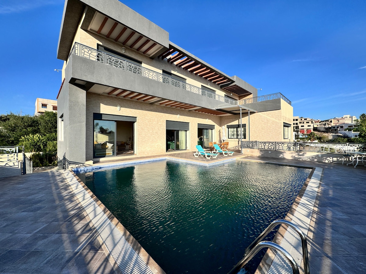 15 min from the airport, and 9 min from Tanger’s largest shopping center, Socco Alto. It features 4 bedrooms with private bathrooms and TVs, 3 living rooms including one with a fireplace and large TV, a spacious garden with outdoor lounges, fire pits, and an infinity pool with panoramic ocean views. Breakfast available on request. Unmarried Moroccan or Arab couples cannot stay together.