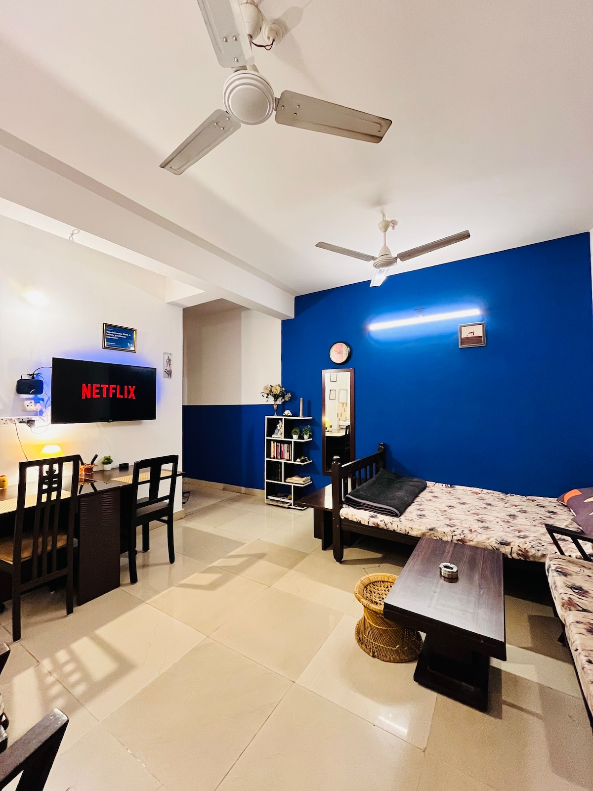 Questo 1bhk è composto da una camera da letto con bagno annesso, una sala da pranzo e una cucina completamente funzionale. La camera è dotata di aria condizionata e il bagno è dotato di geyser. Si trova al piano terra con un ingresso separato. È disponibile un parcheggio per un'auto/bici. Wifi disponibile. Spazio queer e adatto alle coppie per gli ospiti di età pari o superiore a 18 anni.