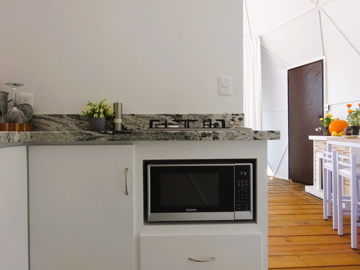 Ne abbiamo altri 3 https://abnb.me/dobQuKhzUHb https://abnb.me/J2QI6zIzUHb https://abnb.me/4CukDRDzUHb Questa cupola è una struttura a guscio costruita con aste metalliche, che le consentono di resistere a carichi molto pesanti e a forti venti nonostante la sua struttura leggera. La maggior parte delle volte, quando si pensa al glamping, si pensa anche a una situazione isolata. Anche se qui non sei esattamente isolato, visto che hai elettricità e wifi, sei abbastanza lontano dai sentieri battuti da poter ammirare il tramonto e l'alba dalla tua cupola.