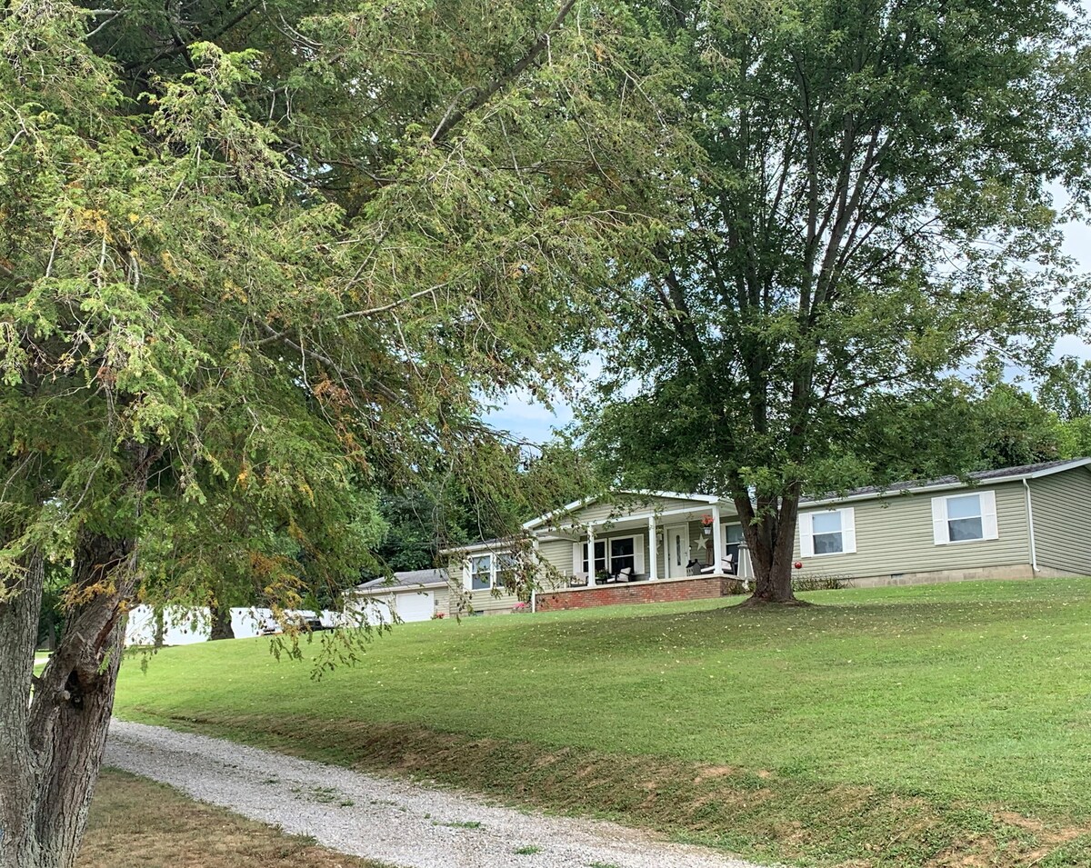 Casa molto pulita con 3 camere da letto (4 posti letto), 2 bagni completi, per non fumatori, immersa nella natura, su un terreno di un ettaro. A soli 10 minuti di auto dal centro di Athens e dall'Università dell'Ohio. La casa può ospitare comodamente 4-6 persone (3 letti matrimoniali e un futon a grandezza naturale). Goditi una colazione self-service, una terrazza panoramica e un facile accesso all'autostrada 33. Ci sono due cantine molto vicine e ti piaceranno le splendide viste sul paese e sulle dolci colline del sud-est dell'Ohio! Perfetta per un weekend fuori porta con la tua dolce metà o per una visita ad Athens o alla OU!