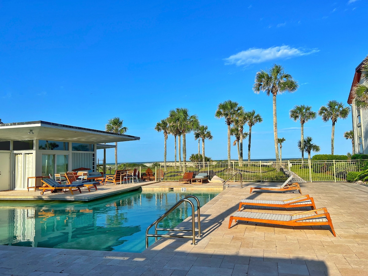 La felicità sulla spiaggia ti aspetta in questo appartamento ristrutturato di fronte all'oceano, con vista sull'Atlantico. Goditi la splendida vista sull'oceano dal soggiorno spazioso al 2° piano e dalla cucina completamente attrezzata. Rilassati in un comodo letto king-size, sul balcone con un tavolo per due o esplora i negozi e i ristoranti nelle vicinanze. Include wifi, lavatrice/asciugatrice e tocchi di classe come biancheria di lusso, articoli da bagno essenziali e attrezzatura da spiaggia. Ideale per una vacanza sull'oceano per due persone, con tutto il necessario per un soggiorno indimenticabile.