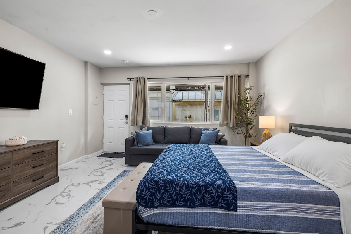 Nuovo annuncio! Un monolocale recentemente ristrutturato a solo un isolato dalla spiaggia/lungomare e a pochi minuti a piedi dal Tropicana Casino e dalla Stockton University! Questo monolocale è dotato di tutte le necessità di base. La cucina dispone di piano cottura in vetro integrato con 2 fuochi, mini frigorifero e macchina per il caffè. C'è un comodo letto matrimoniale con materasso in memory foam, un divano letto estraibile e una TV a schermo piatto Roku da 65 pollici. C'è un tavolo da pranzo per coppie che funge anche da spazio di lavoro