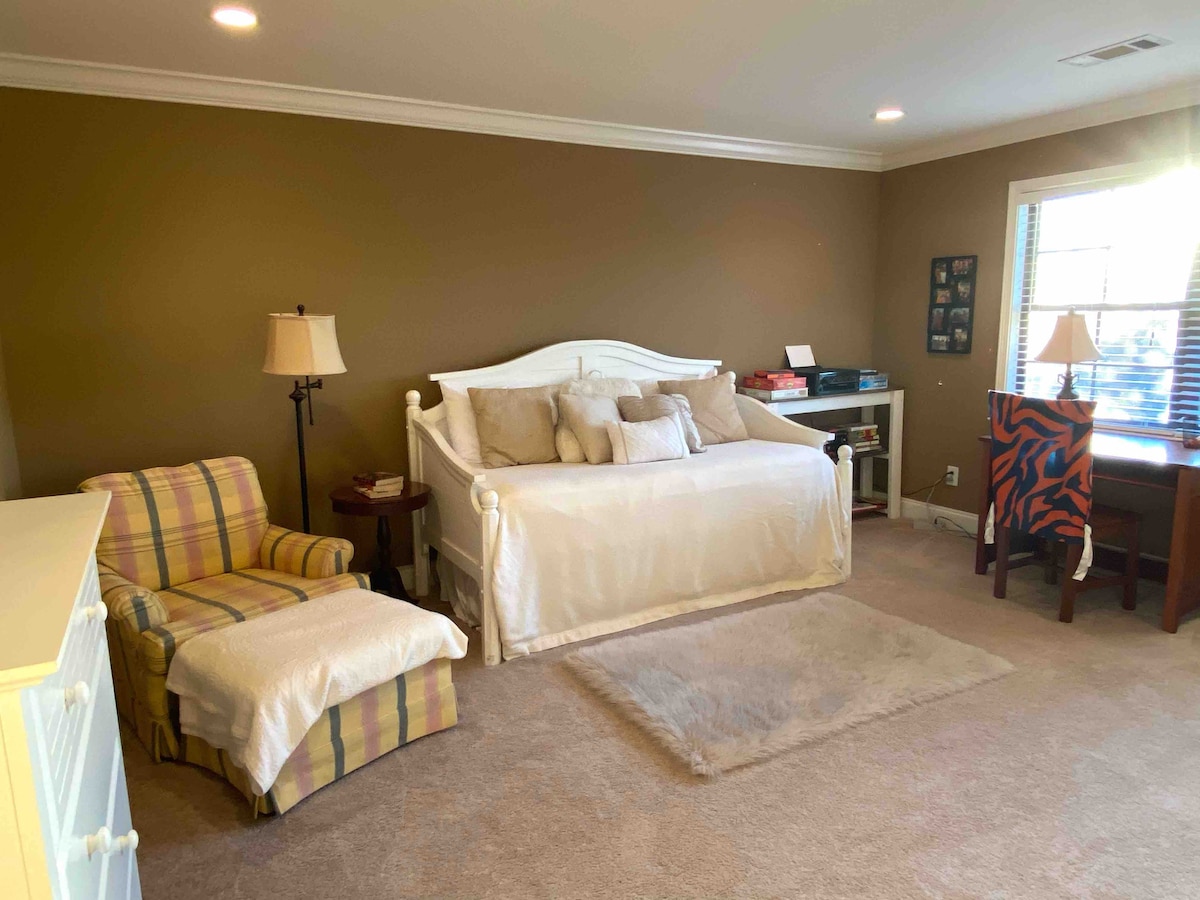 Piccola aggiunta alla nostra casa per ospiti e familiari fuori città. Ingresso privato e non è collegato al resto della casa dall'interno, ma sopra la stanza c'è la camera da letto dei nostri bambini. Dispone di un piccolo angolo cottura con bollitore, forno a microonde e frigorifero (senza congelatore). C'è un piccolo bagno con doccia e un letto matrimoniale in 160 piedi quadrati, quindi uno spazio molto piccolo e stretto :) C'è un piccolo portico dove passare il tempo. Siamo fuori dai sentieri battuti, nel bosco. A 12 minuti da Callaway, appena fuori dalla 185, uscita 30, 32
