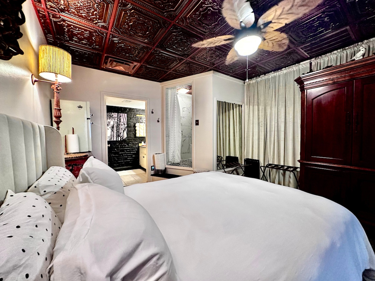 This serene mini-suite is a one-room studio apt. attached to our lovingly-restored 125 yr. old historic home. 🔐Guests enjoy the security of their own dedicated entrance, making the Suite completely private & separate from our adjoining residence. 🌟 Ideal for traveling workers or couples needing an overnight retreat. 🗺️ Centrally located in the dynamic & Historic Summerville district of Metro-Augusta. ✅ Equipped w/ cozy, queen bed, sitting area, kitchenette, smart TV, WiFi & private bath.