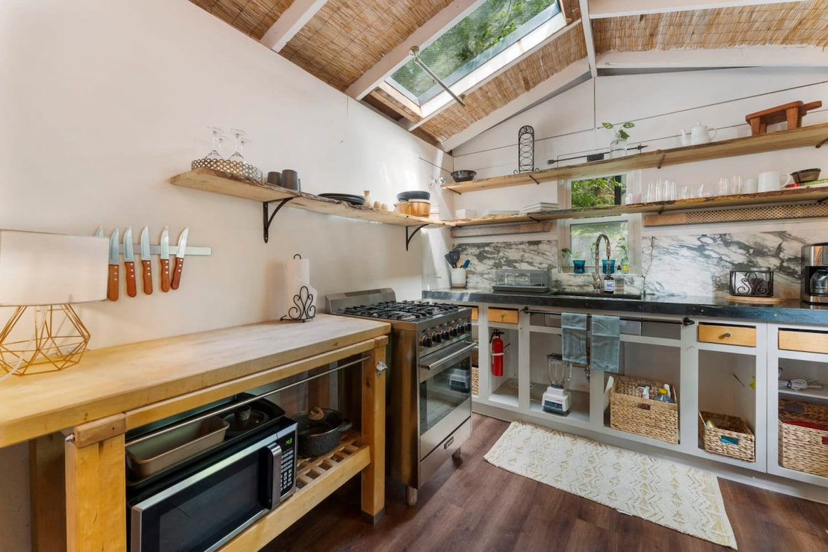 Questa è una pensione alla moda, confortevole e comoda per trascorrere una vacanza all'insegna del divertimento a East Austin. La nostra casita è raggiungibile a piedi da molti dei luoghi più interessanti di Austin, tra cui il Moody Center, il più grande locale di musica della città. Costruita nel 2020, la nostra pensione dispone di un letto matrimoniale a soppalco, un divano con materasso singolo estraibile, un'elegante cabina doccia, una smart TV e piccoli elettrodomestici tra cui frigorifero con congelatore, forno a microonde e macchina da caffè Nespresso. Rilassati con stile mentre esplori la nostra divertente città!