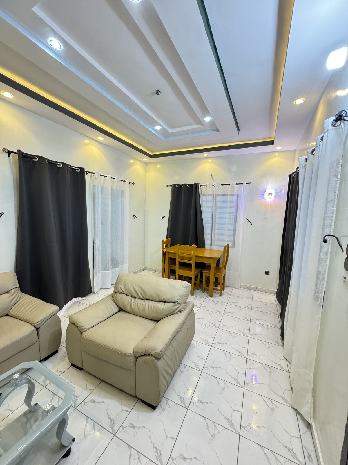 Vi proponiamo questo bellissimo appartamento nella città di Abomey-Calavi, non lontano dalla capitale economica Cotonou. Si trova vicino al più grande centro commerciale Super U. e a pochi minuti dalla Venezia d'Africa (Ganvié). Si tratta di un appartamento moderno climatizzato (ampio soggiorno e 2 camere da letto indipendenti) funzionale con una cucina completamente attrezzata (fornello – forno a gas, ecc.). La piscina completamente privata sul Rooftop è perfetta per il vostro relax e sarà esclusivamente a vostro uso.