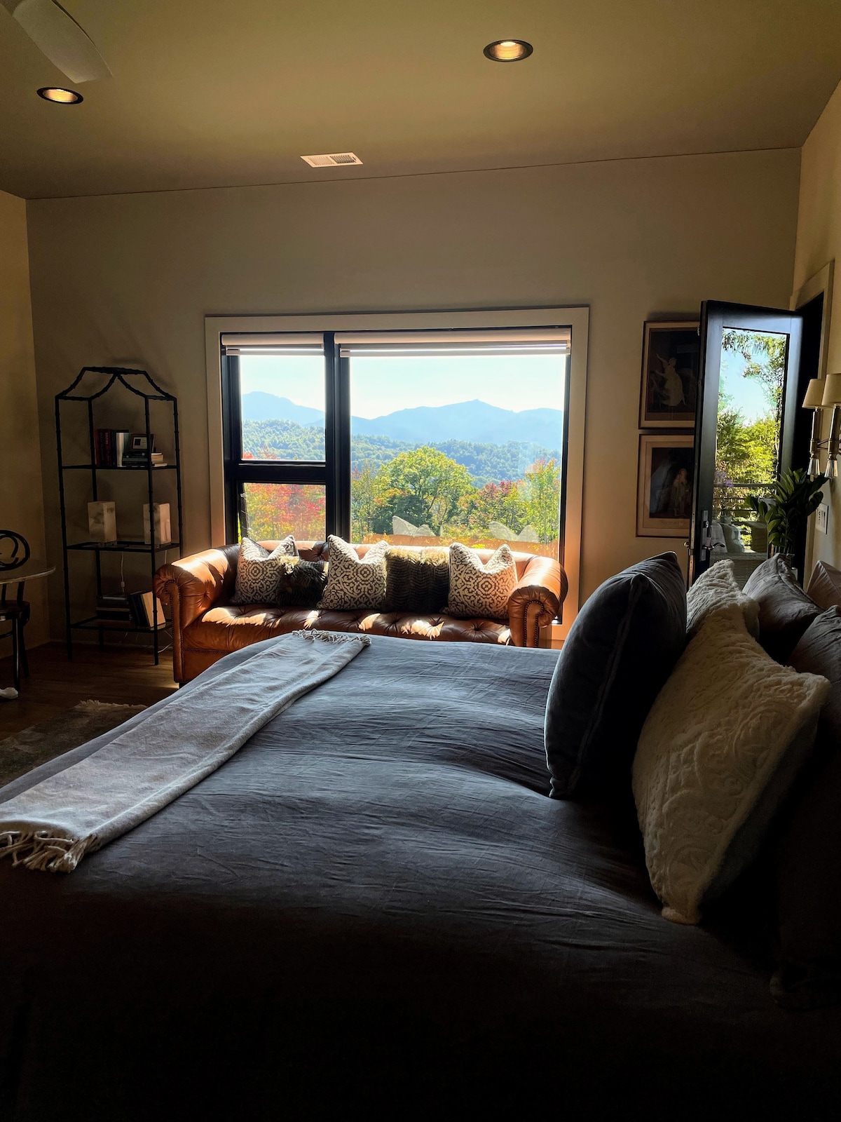Rilassati e connettiti mentre ti godi incredibili viste panoramiche sulle montagne nella Suite Big Sky (Chambré de Grand Ciel). Questa suite personalizzata offre la fuga perfetta a soli 4 miglia da Boone/ASU. Perfetta per viaggiatori solitari o coppie, questa suite a tema francese è elegante e romantica, con ingresso esterno privato, angolo cottura ben fornito, bagno privato con doccia a pioggia, letto king size e vista mozzafiato dall'ampia terrazza (potrebbe essere condivisa con l'altra nostra suite se prenotata).