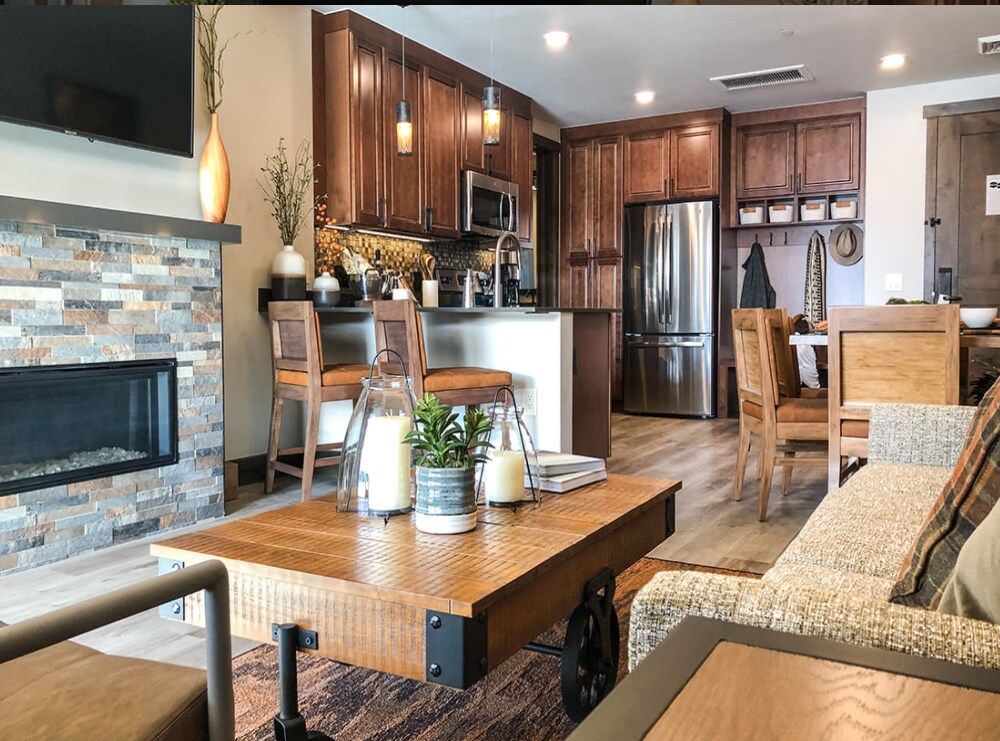 Grand Timber Lodge: un appartamento PADRONALE con una camera da letto, una cucina gourmet completamente attrezzata, una sala da pranzo, un caminetto e un soggiorno, un divano letto queen-size, un letto matrimoniale grande separato, un bagno con vasca idromassaggio. Può ospitare comodamente 4 persone in una stazione sciistica a 5 stelle. Servizio navetta per città, negozi, ristoranti e altri impianti di risalita se non vuoi sciare in/sciare fuori. Il resort è ideale per coppie, avventurieri solitari, chi viaggia per lavoro e famiglie (con bambini).