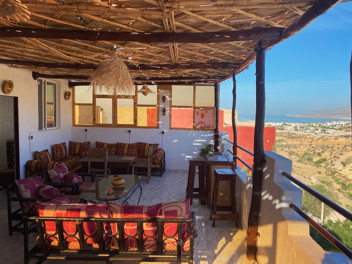 Ti piacerà per il nostro arredamento in stile berbero di questo incantevole alloggio. Situata una passerella dalla spiaggia (3 minuti a piedi), nella piccola città di Taghazout, la nostra nuovissima pensione ha un soggiorno, una cucina ben attrezzata, 9 confortevoli camere con bagni privati (27 letti in totale), yoga shala e due meravigliose terrazze con vista spettacolare. È il luogo perfetto per amici e famiglie che vogliono rilassarsi e scoprire la regione, soprattutto per chi ama avventure di ogni tipo.