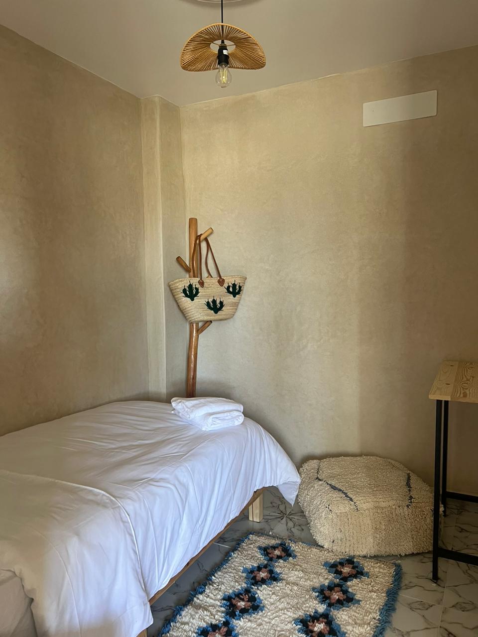 Cozy twin room inspired by the traditional charm of Fez, offering a peaceful and bright space to relax after a surf day. Located on the second floor of Nomazigh Surf House, guests can enjoy access to the chill terrace, co-working area and a rooftop with ocean view. Just a short walk to local bakery (1 min), Happy Tamraght restaurant (2 min), and Manzili Co-working (4 min). Close to popular surf spots like Devil’s Rock and Banana Point.