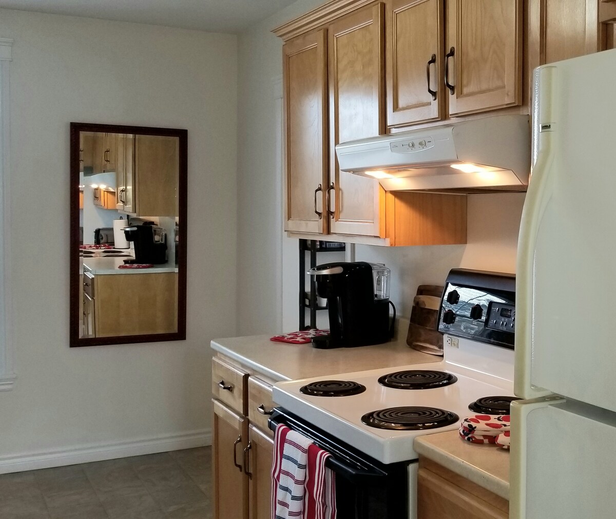 SPAZIO AMPIO E RISTRUTTURATO situato nella Annapolis Valley. Questo appartamento è una splendida fuga, sia per lavoro che per piacere, e soddisfa tutte le esigenze di una casa. Può ospitare 6 persone con 2 letti matrimoniali e un comodo futon pieghevole. Caminetto elettrico. Cucina completa, caffè, barbecue, patio, lavatrice e asciugatrice (vedi servizi completi). TV via cavo digitale, Smart TV, Wi-Fi e Netflix. A pochi minuti dalla Highway 1 e dalla Highway 101 per raggiungere tutte le città e soddisfare le esigenze turistiche. A 5 minuti di auto dall'ospedale per soggiorni personali o professionali.