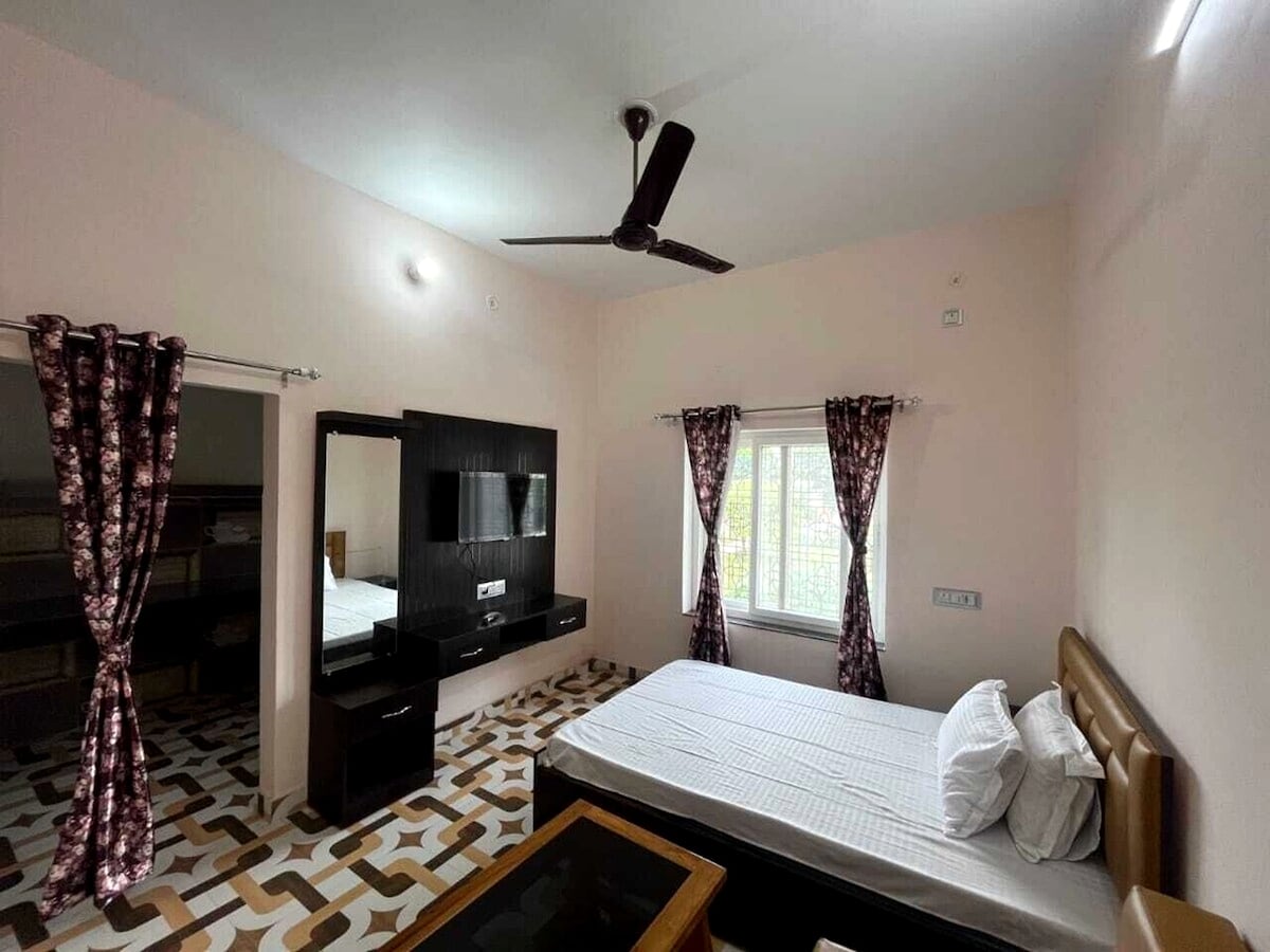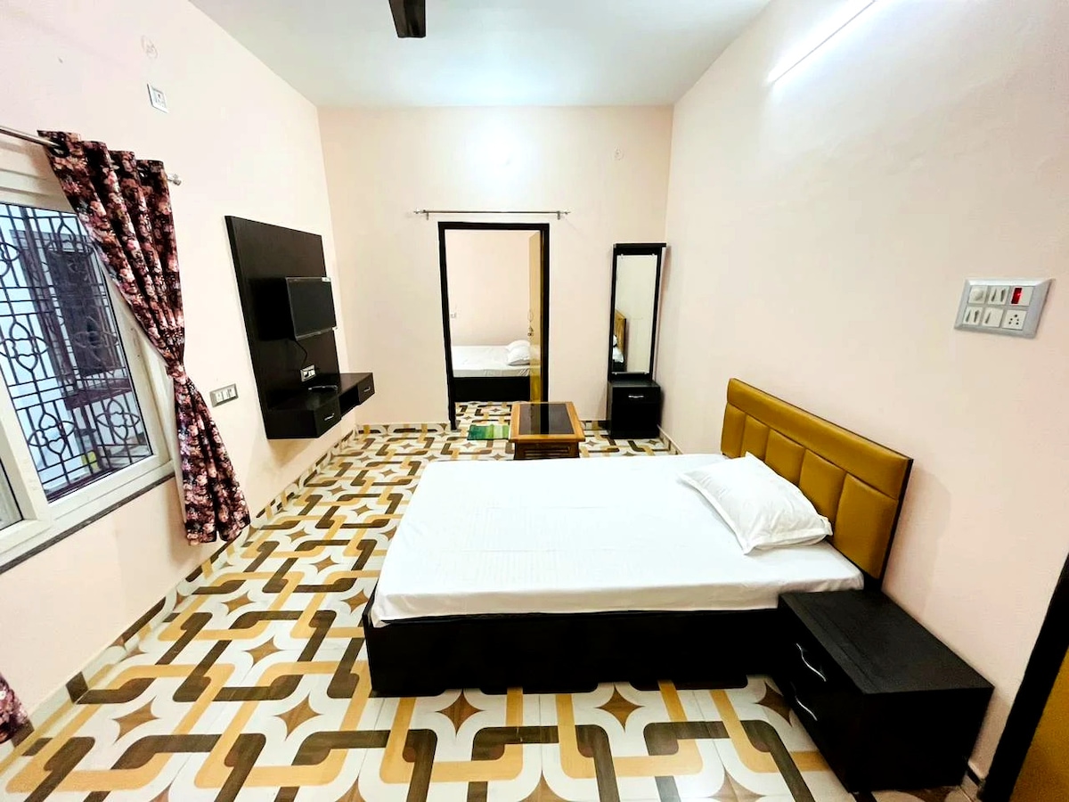 1 King Size Bed (AC) + 1 Queen Size Bed (Non-AC) Best for: Families with children | Pilgrims visiting Ayodhya | Groups of 3–4