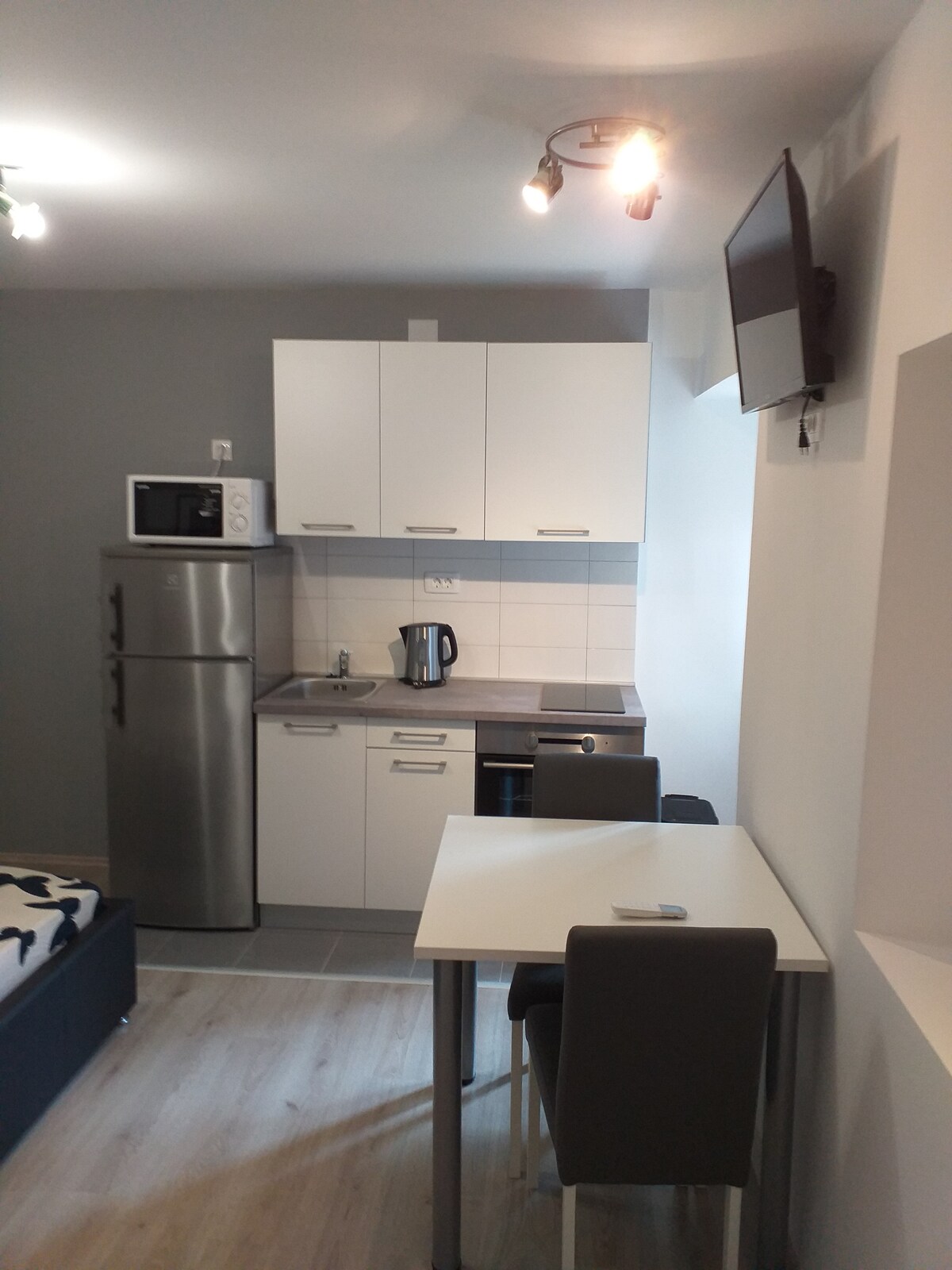 È un nuovissimo appartamento moderno, caldo e confortevole con ampio soggiorno (aria condizionata), TV, cucina, camera da letto e bagno. Dispone inoltre di parcheggio gratuito e free wi-fi. Strada tranquilla in prossimità di un parco giochi per bambini. L'appartamento è fatto per due persone ma può ospitare anche un bambino piccolo fino a tre anni ().