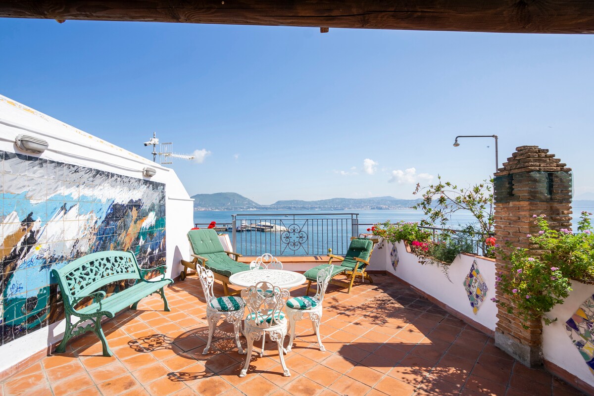 Incantevole casa al mare in stile Mediterraneo con una vista mozzafiato sul golfo di Pozzuoli ed il Vesuvio. Ha un accesso diretto alla spiaggia di Marina Grande, che dista un minuto a piedi. L'ampia terrazza con vista sul mare è ciò che rende questa casa vacanze così speciale. Gli ospiti possono godere di splendidi tramonti e momenti di tranquillità poiché la casa si trova in una quieta zona residenziale. Allo stesso tempo è a pochi passi dal centro del paese e dai siti archeologici.