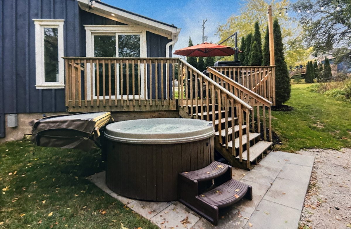 Questa casa sulla spiaggia è stata progettata pensando al relax e al piacere di stare insieme. Lascia che le tue preoccupazioni svaniscano mentre ti immergi nel calore di questa vasca idromassaggio sul lungomare, con una vista mozzafiato sulla baia di Georgian e sul fianco della montagna, mentre la neve fresca cade intorno a te. Il design a pianta aperta la rende il luogo perfetto per riunirsi con familiari e amici, con patio sul lungomare e accesso al molo per nuotare. A 2 minuti dal centro di Meaford, a 20 minuti da Blue Mtn e a un'ora e mezza da Tobermory. Sentieri escursionistici