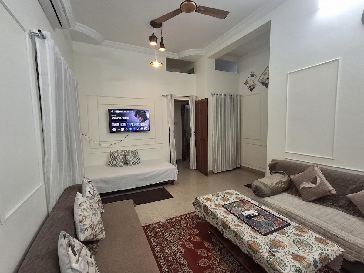 Welcome to our spacious 2BHK retreat in Ujjain — perfect for families and groups visiting the Mahakal Temple. The home features AC bedrooms, a private balcony, a basic kitchen setup( for tea/coffee) , RO water, and free parking. Stay up to 7 guests comfortably, with extra bedding for up to 9 on request. A very nice Terrace Garden . Enjoy flexible check-in, a peaceful neighborhood, and host guidance for temple visits. Clean, cozy, and thoughtfully prepared — your home away from home in Ujjain.