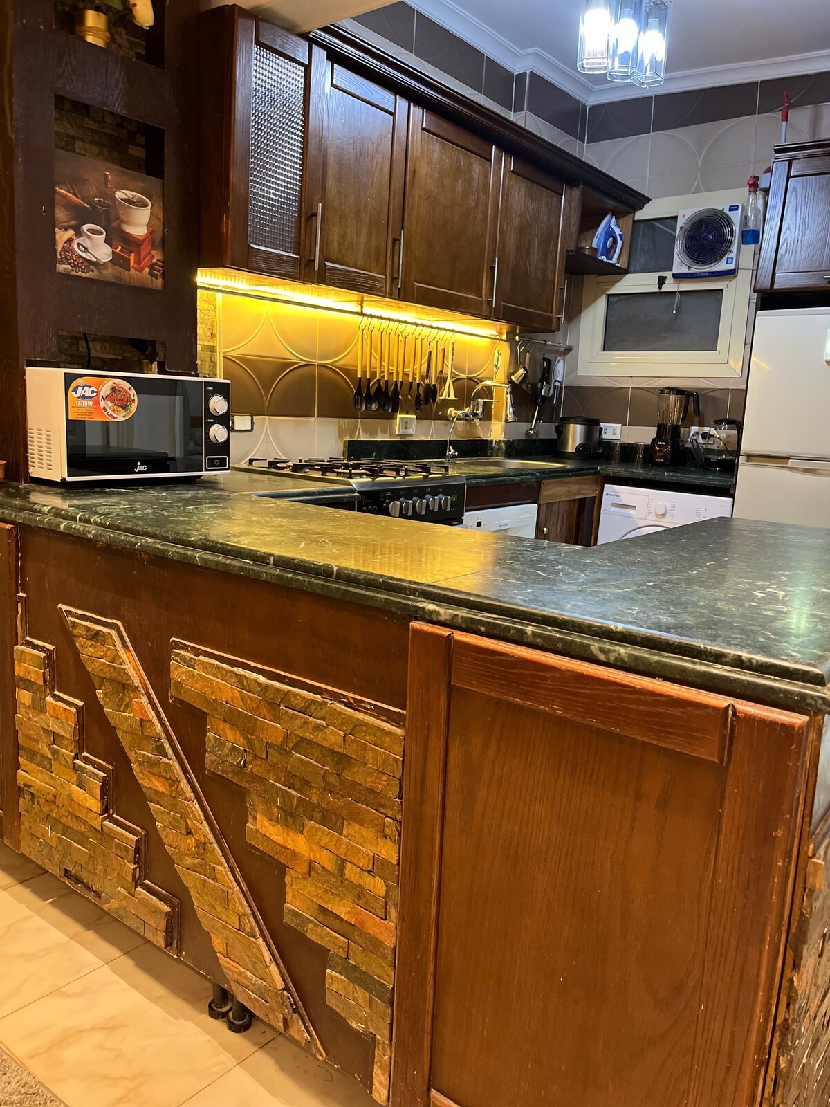 Un INTERO APPARTAMENTO con giardino sul retro, situato in una bella zona verde in una comunità pacificamente integrata che soddisfa tutte le esigenze dei residenti. Le camere sono state recentemente arredate, dispongono di aria condizionata, smart TV e tutti i comfort di cui potresti aver bisogno, e sono super PULITE e SILENZIOSE. L'appartamento si trova a 25 minuti dall'aeroporto internazionale del Cairo. Nelle vicinanze troverai caffetterie, ristoranti, supermercati e farmacie. Qualità standard alberghiera con comfort domestico offerto a un PREZZO RAGIONEVOLE.