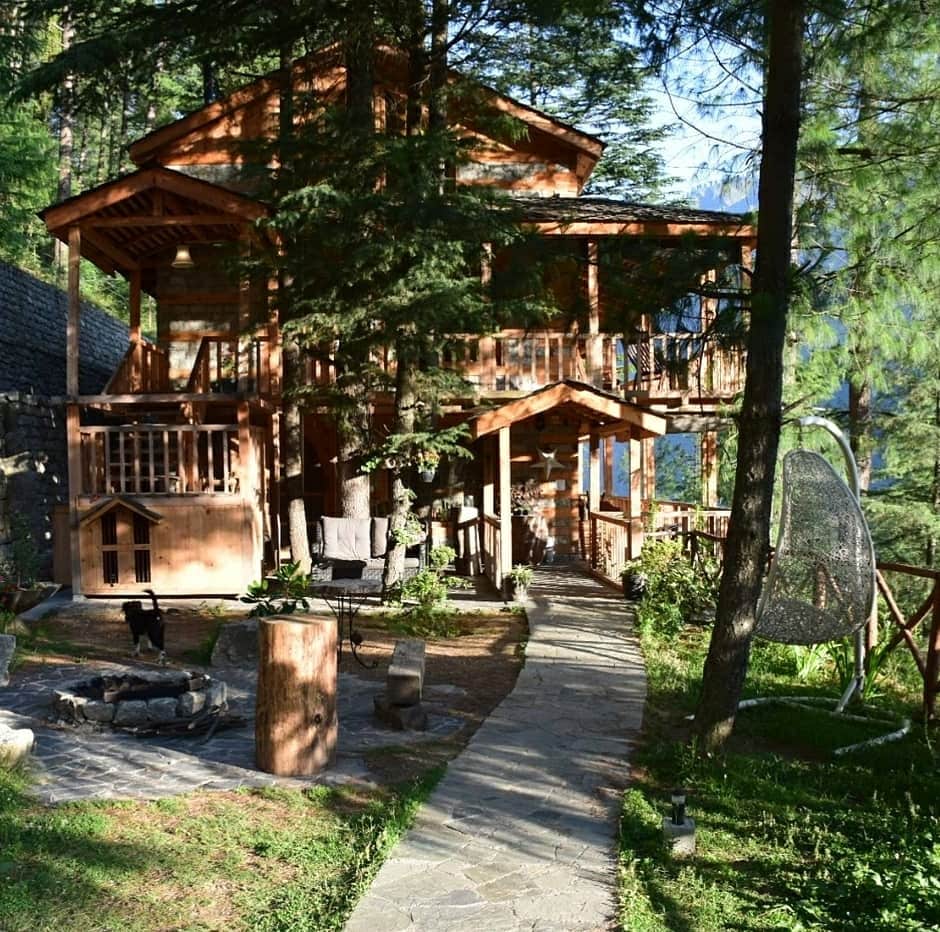 “Into the Woods Eco lodge in the middle of Apple orchards and forest with stunning views.” ★ Rustic Pinewood Architecture ★ Panoramic Views of Forests & Mountains ★ Eco-friendly Stay . ★ Wi-Fi ★ Power Backup ★ Fresh, Home-style organic Food ★ Bonfire Area ★ Indoor Fireplace & Dining Area ★ Organic Garden Surroundings Please note:- There is 500 meters trek down from parking spot to reach at property, Your luggage will be carried by us.