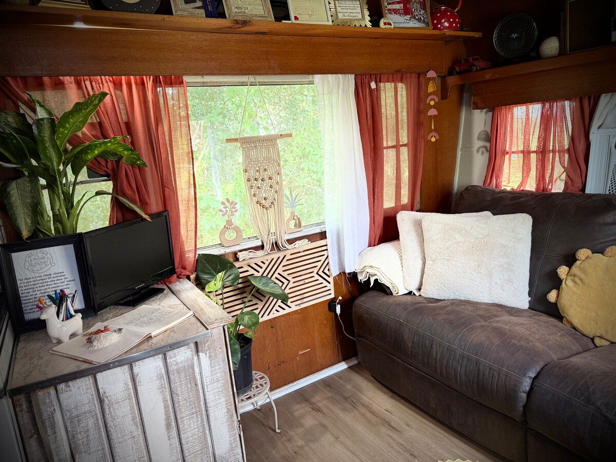 Goditi un'esperienza unica nel nostro camper situato nella nostra fattoria. Immerso nella natura in un ambiente di campagna ma perfettamente situato vicino ai servizi moderni. Questo è il luogo perfetto per rallentare e ricaricarsi. All'arrivo, noterai uno spazio esterno designato per il tuo divertimento e la tua privacy, dove potrai sorseggiare un drink vicino al fuoco o grigliare hamburger per cena. L'angolo cottura è rifornito di tutto il necessario, c'è anche una macchina per il caffè con cialde e forniture. Forno a microonde, frigorifero, piano cottura a 2 fuochi.