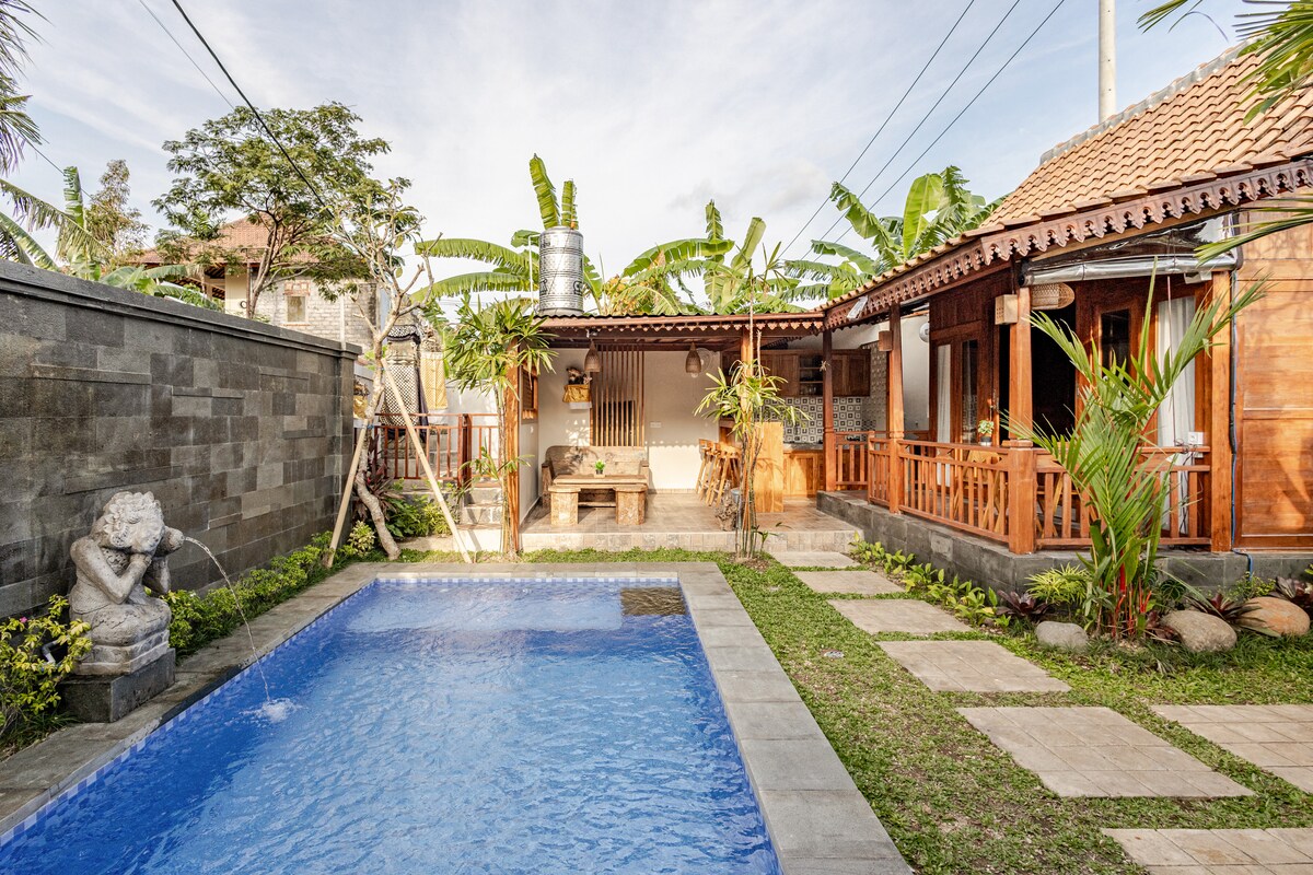 Enjoy an authentic stay in a Balinese-style wooden house that combines luxury with the serenity of nature. This property features 2 spacious bedrooms with warm wooden interiors and artistic Balinese details. The private swimming pool is the highlight, offering an exclusive space to relax in a lush and peaceful tropical atmosphere.