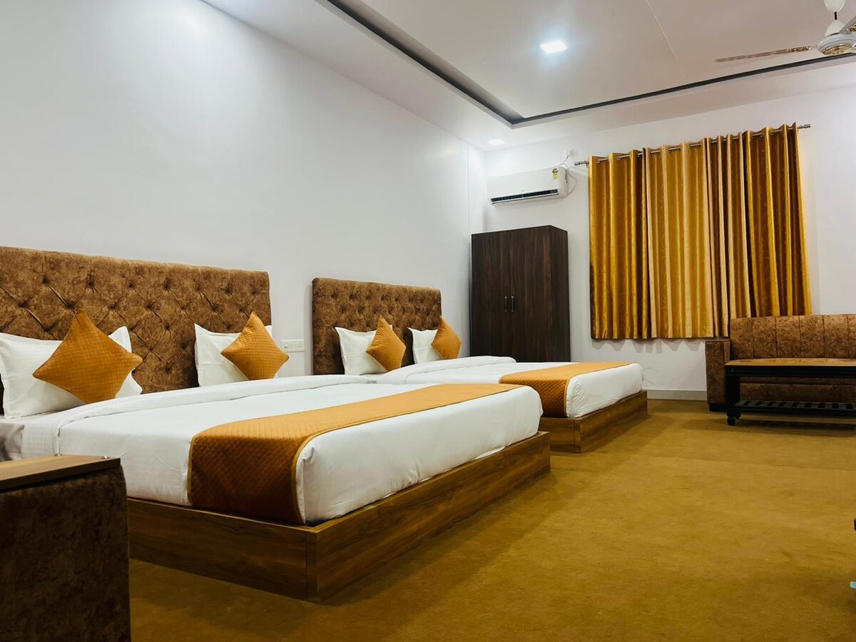 Goditi la #staycation perfetta nella nostra proprietà Pet Friendly Boutique vicino al Parco nazionale di Sariska! Presentiamo le nostre Ville Deluxe per una pausa unica dalla vita cittadina, complete di letti king-size, aria condizionata, Smart TV e bagni moderni annessi per garantire un soggiorno confortevole. Abbiamo anche il wifi, quindi rimani connesso anche in vacanza. Fai un tuffo rinfrescante nella nostra splendida piscina mentre ti godi il panorama. Il nostro ristorante interno e il personale in loco offrono tutta l'assistenza, inclusi i safari nella giungla in jeep.
