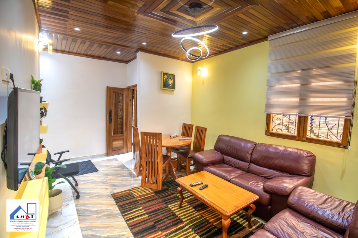 Splendido Appartamento Ammobiliato in Affitto a Dschang – Comfort & Eleganza al Rendez-vous! Cerchi un ambiente tranquillo e moderno per il tuo soggiorno a Dschang? Scopri questo magnifico appartamento arredato, situato in posizione ideale nel cuore della città, vicino a servizi e attrazioni. -Soggiorno spazioso e confortevole, - Connessione Wi-Fi ad alta velocità -Camere eleganti con letti accoglienti -Cucina moderna -Bagno impeccabile, con acqua calda -Sicurezza garantita 24 ore su 24 e parcheggio