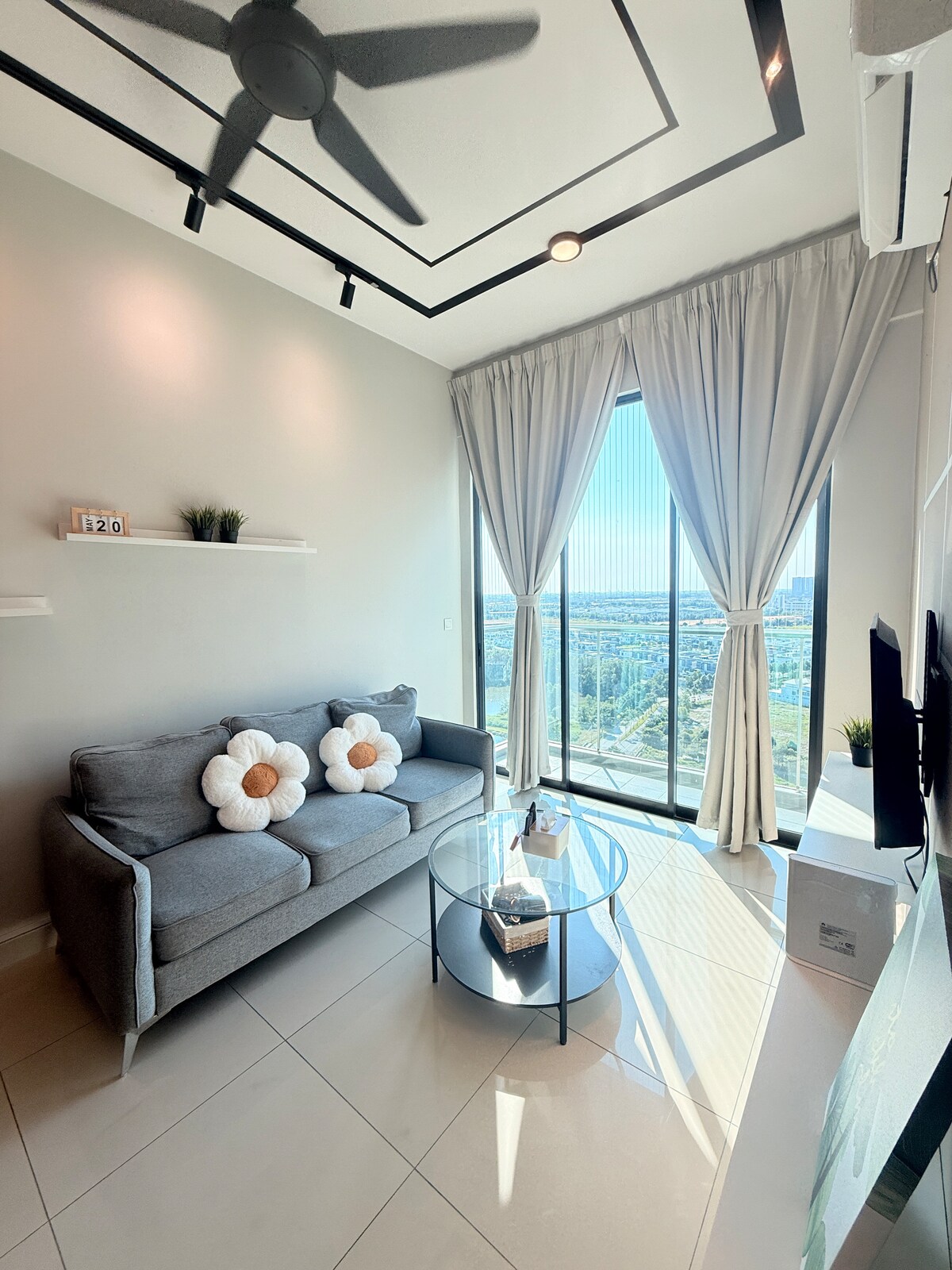 Questo appartamento minimalista con una camera da letto presenta interni rilassanti, puliti e moderni. La camera da letto include un letto matrimoniale con aria condizionata. La zona giorno è arredata con comode sedute, una smart TV e una connessione Wi-Fi veloce. Un angolo cottura compatto (con frigorifero, forno a microonde, bollitore e utensili). 🏙️ Situato a soli 10 minuti da KLIA e a 5 minuti dal Mitsui Outlet Park, con servizi come piscina, palestra e sicurezza 24 ore su 24, 7 giorni su 7, è la tua sosta ideale per il transito o un breve rifugio in città.
