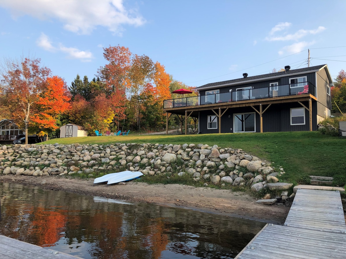 Lakefront, A-frame, 4 season cottage in the Haliburton Highlands with convenient access to Haliburton. Indoors ➤ Floor to ceiling windows (20ft+) ➤ 3BR - 1 King, 2 Queens ➤ Fireplace - wood provided ➤ Fully stocked kitchen ➤ Linens provided ➤ Reliable internet Outdoors ➤ Screened-in lake view porch ➤ Sauna seats 6 ➤ Bonfire pit - firewood provided ➤ Weber BBQ ➤ Great swimming & fishing from our 40ft dock Our pricing includes HST. 2.5 hrs from GTA on Long / Miskwabi Lake