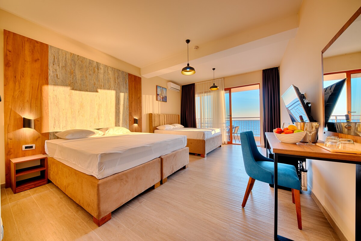 Nećete željeti da napustite ovaj šarmantni, jedinstveni smještaj. Opustite se i posvetite sebi i porodici u našoj Family sobi, sa pogledom na more, dva francuska kreveta i prostranom terasom.