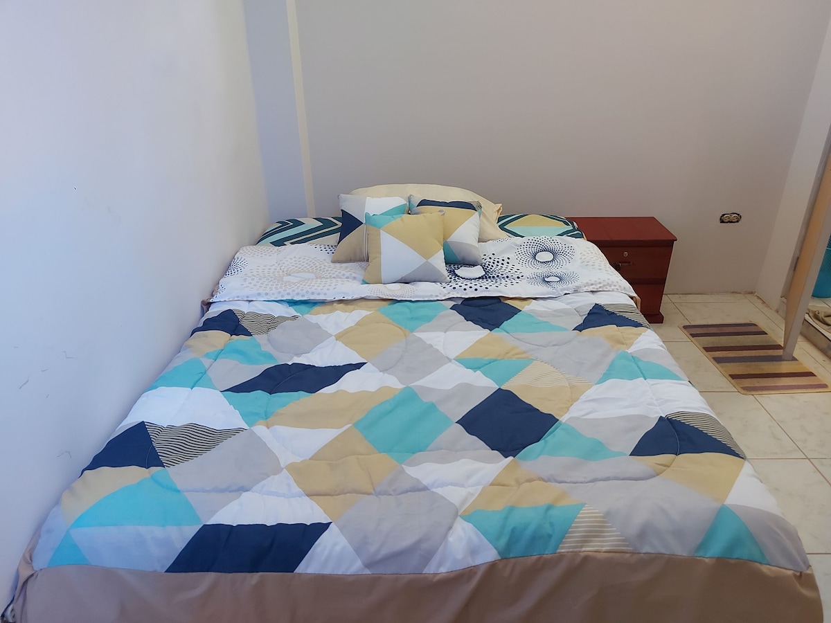 Goditi la semplicità di questo alloggio; tranquillo, centrale e sicuro, è costruito su una base resistente ai terremoti; dispone anche di servizi e un'atmosfera familiare è vicina dalla spiaggia di Murciélago, dal centro commerciale del Pacifico, da bar, ristoranti, musei, negozi locali, sicurezza 24 ore su 24, aria condizionata, acqua calda, Wi-Fi senza interruzioni, balconi e terrazza ricreativa, macchina per esercizi, elettrodomestici completi, garage, servizio di lenzuola e asciugamani.