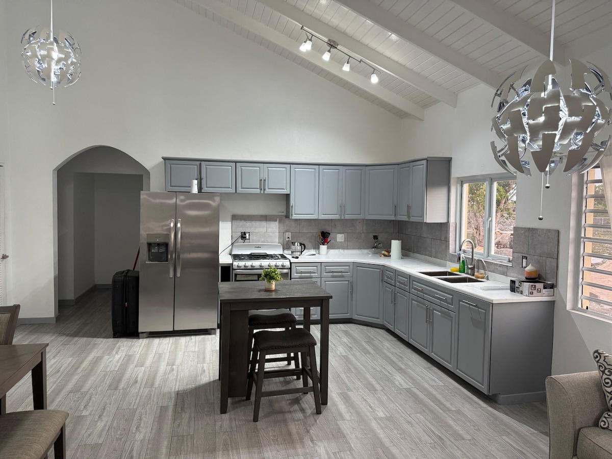 Barbuda is waiting for you at this spacious 3-bedroom, 3-bath suite—perfect for families, friends, or groups seeking comfort and privacy. Each bedroom includes its own private bathroom, and the home is equipped with a washer and dryer for added convenience during your stay. What truly sets this property apart is that it runs fully on solar energy, making it a one-of-a-kind home that always has power regardless of utility status.