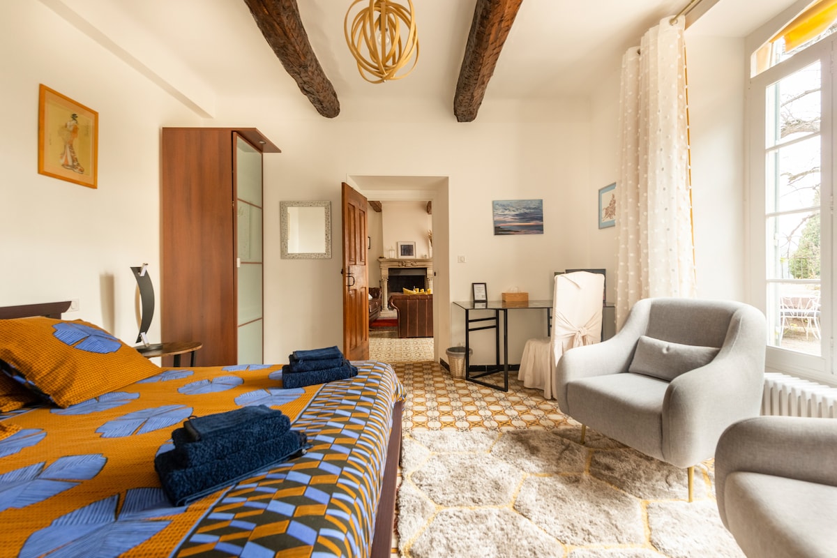 Let yourself live in this peaceful, refined and central accommodation without opposite. A private garden for tenants with terrace complete the pleasure of your stay. Simplify your life in the heart of the fortified village by leaving your vehicle at the Saint Etienne car park next door. Visit its museums, discover its shops, its restaurants. Vineyards, olive groves and walks to discover the typical Provence. Welcome to our home.