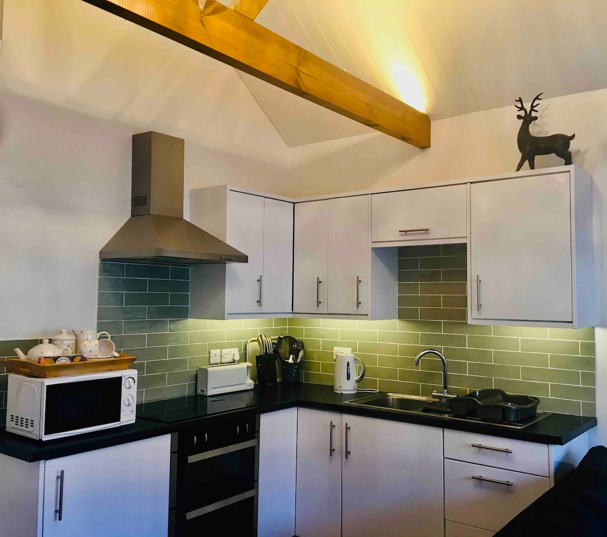 Beech Wood Lodge è un incantevole lodge indipendente su un solo piano, immerso in edera e faggi. È ideale per coppie o piccole famiglie; anche i cani sono i benvenuti. Tutto al piano terra: soggiorno/sala da pranzo/cucina con divano letto matrimoniale. 1 camera matrimoniale con bagno interno con doccia e servizi igienici. Riscaldamento centralizzato elettrico, elettricità, biancheria da letto e asciugamani inclusi. Su richiesta, lettino da viaggio e seggiolone. TV con canali gratuiti, cucina elettrica e forno a microonde. Wifi. Parcheggio per 2 auto.