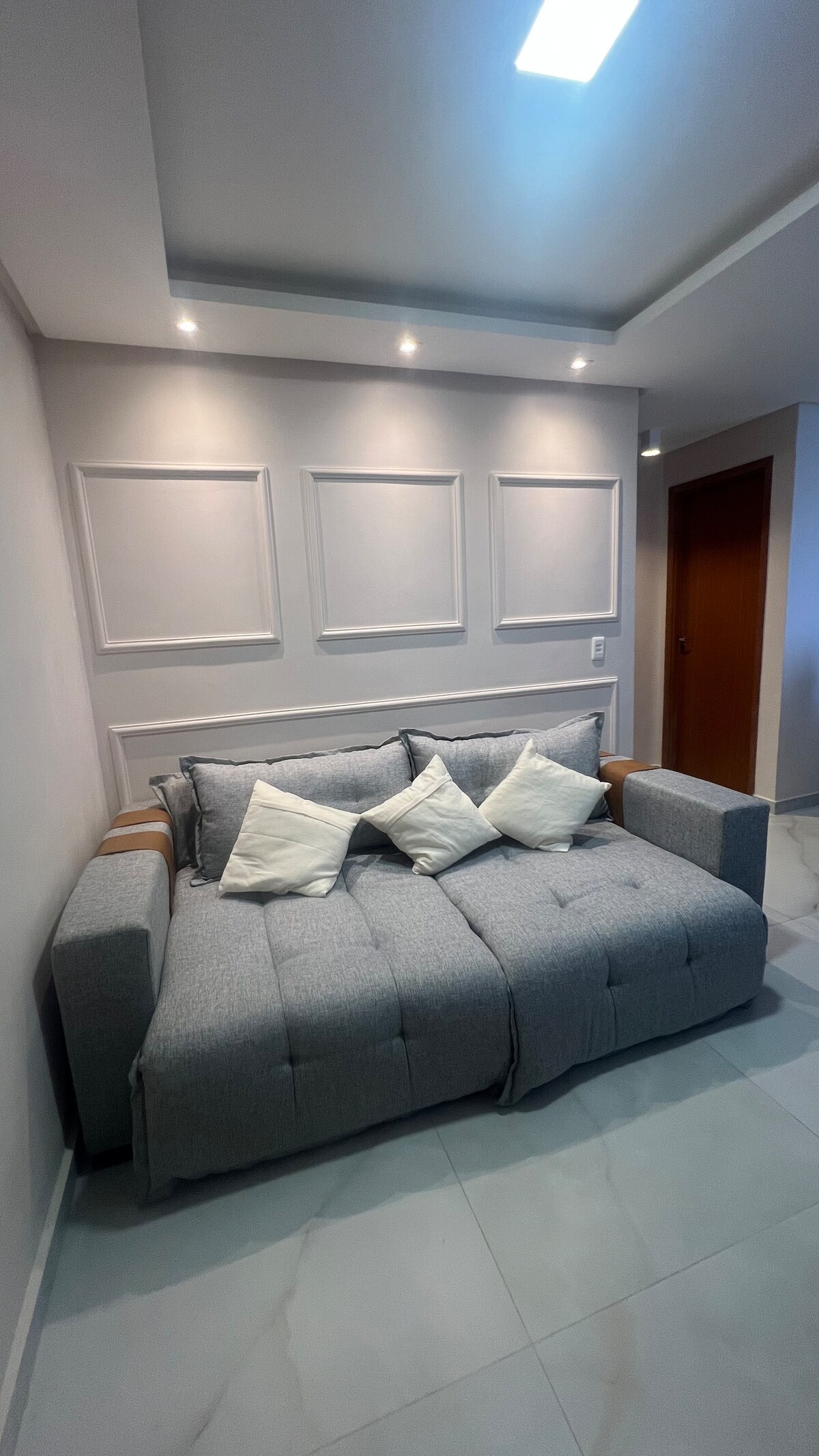 Our apartment has 02 bedrooms, 1 double with suite and a social bathroom. A living room combined with dining room and TV, kitchen combined with service area equipped with stove, new refrigerator, Air fryer, sandwich maker, blender, popcorn maker, microwave, fans, washing machine, household items, couscous maker and some pots. The gas is piped. The common area of the condominium has a swimming pool, barbecue, games room, gym, sauna, playground and garage.