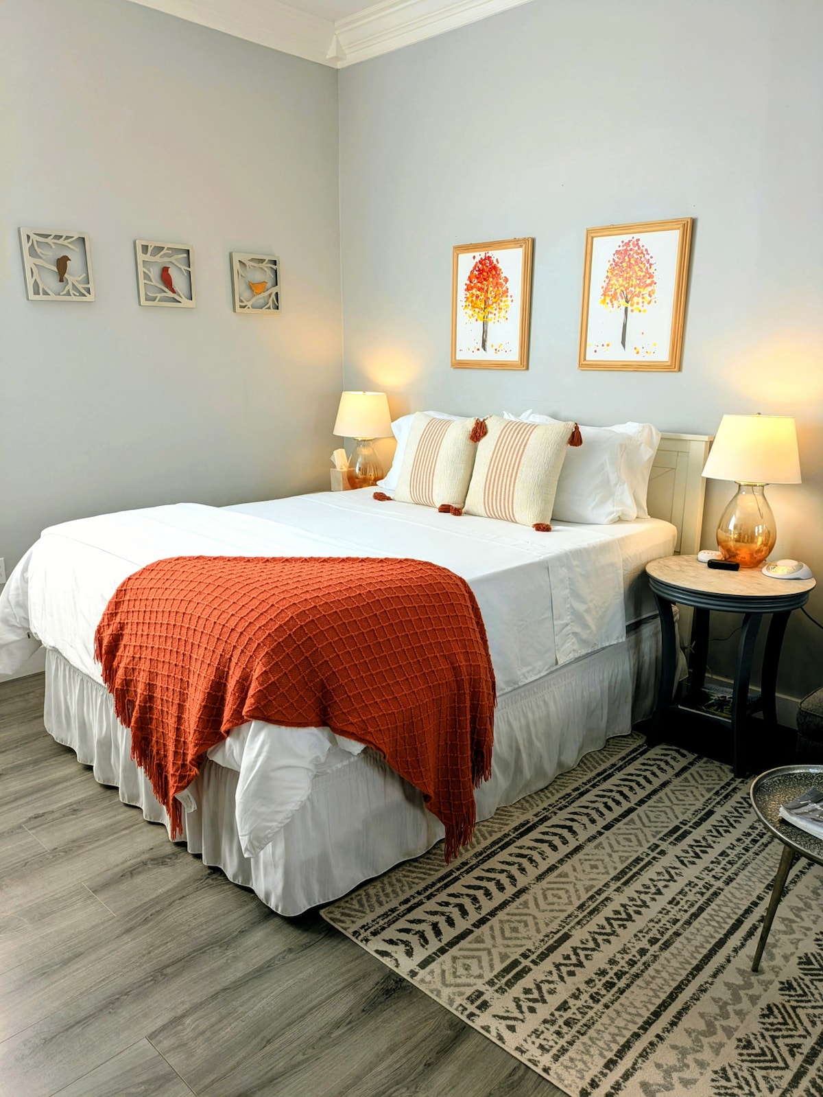 Escape to the Aspen Room, a serene and spacious private suite in a charming Carriage House. Perfect for two, this modern farmhouse retreat in Winder, GA, features a king bed, kitchenette, and private bath. Enjoy peaceful decor and access to lovely outdoor spaces including a patio with a fire pit. A cozy, personalized alternative to a hotel, offering a unique and relaxing getaway.
