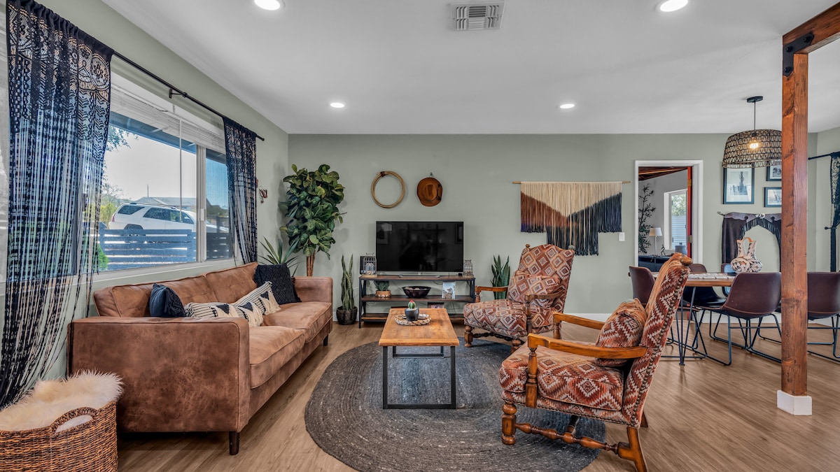 Ti diamo il benvenuto al Camp Sputnik! Gli ospiti possono portare con sé un cane adulto addestrato. Spiacenti, niente gatti o cuccioli! Casa da sogno nel deserto restaurata a North Joshua Tree Una spaziosa camera con letto matrimoniale grande, smart TV con servizi di streaming e una grande finestra che offre una splendida vista sul deserto e accogliente a letto. La zona giorno ha un materasso gonfiabile per gli ospiti aggiuntivi. La fuga nel deserto perfetta per un viaggio romantico o un piccolo gruppo di amici.
