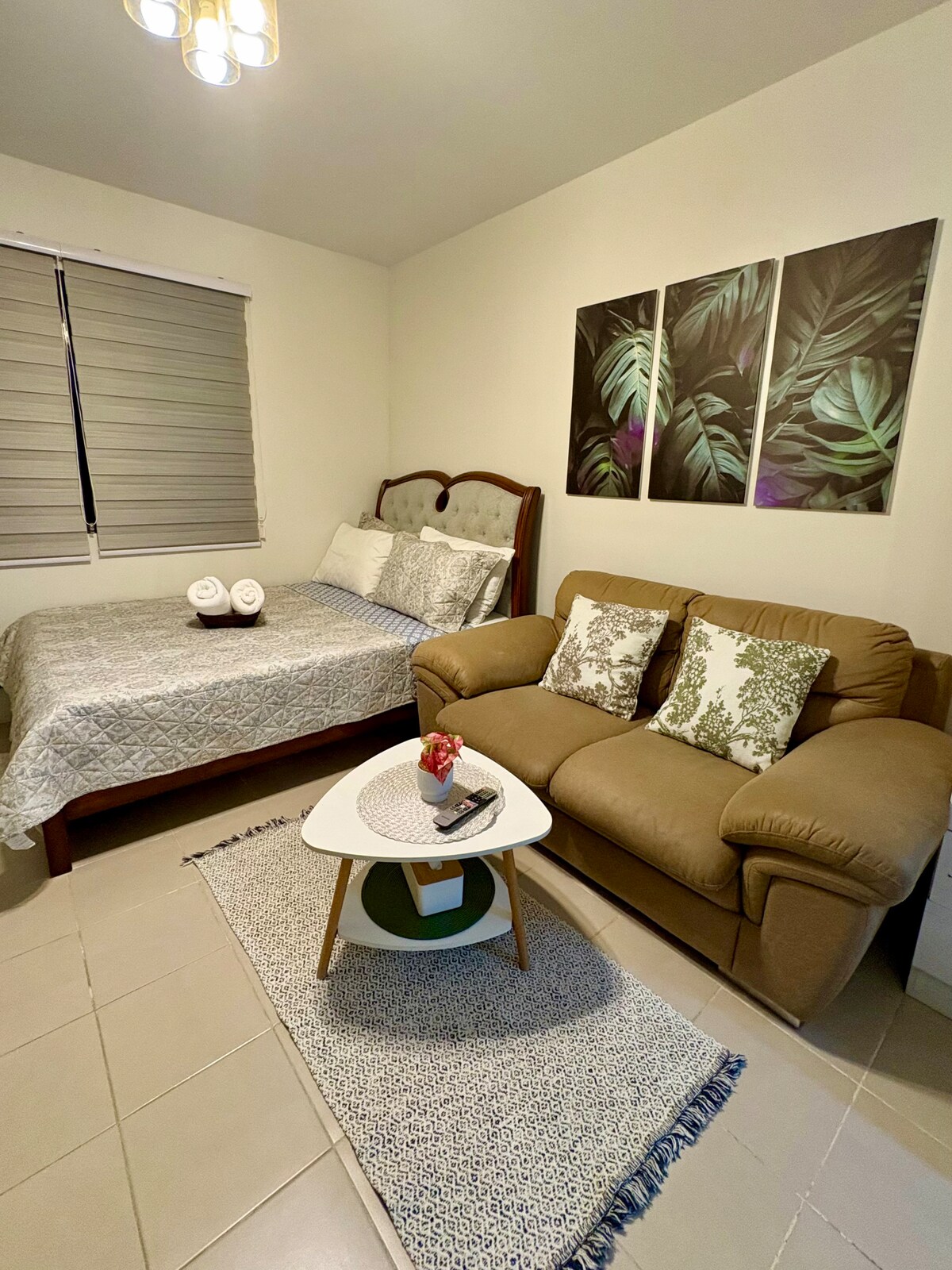 Welcome to The Cozy Corner — a brand new, spacious studio just 15-25 minutes from Mactan-Cebu Airport. Ideal for tourists or locals looking for a quiet, comfortable staycation. The unit features a queen bed, smart TV, fast Wi-Fi, balcony, kitchenette, and private bathroom. Located in Plumera Mactan with 24/7 security, guest parking, and nearby convenience stores and restaurants. Clean, cozy, and perfect for short stays.