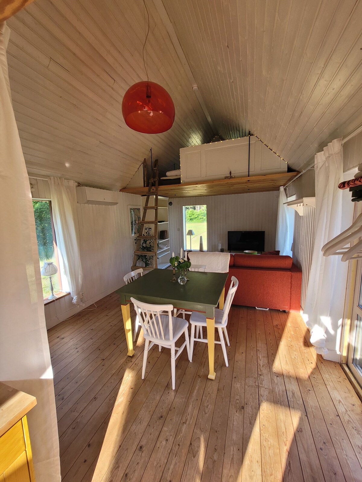 Mysig semester för två. Härlig stuga från 50-talet med fina vintage-möbler inspirerade av samma årtionde. Är sista stugan på vägen ut på en udde i Vittsjös sjöområde så här har du lugnet och tystnaden, men är ändå bara en promenad från affärer och tåg. Skogen inpå knuten och härliga strövområden. Här vaknar du med utsikt över vacker sjö! Njut av stjärnhimlen och ugglornas hoande på kvällen. Ta en rogivande tur i roddbåten på sjön.
