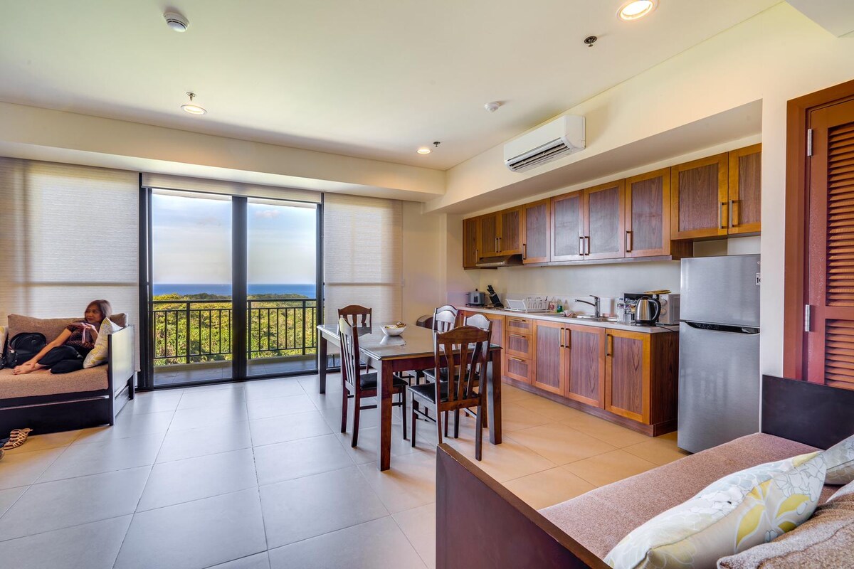 Unità con una camera da letto al Sea Breeze Veranda Anvaya Cove Morong Bataan - Può ospitare 7 adulti - Uso gratuito della piscina condominiale - Ascensore funzionante - Il parcheggio è gratuito - 1 letto king-size - 1 divano letto queen-size - 1 divano letto singolo - 3 materassi singoli - Frigorifero - Fornello per riso - Forno a microonde - Tostapane da forno - Bollitore d'acqua elettrico - Wifi - Netflix - TV HD da 48" - Piatti e utensili - Culla - Asciugamani - Shampoo e gel per la doccia - Refrigeratore - Asciugacapelli
