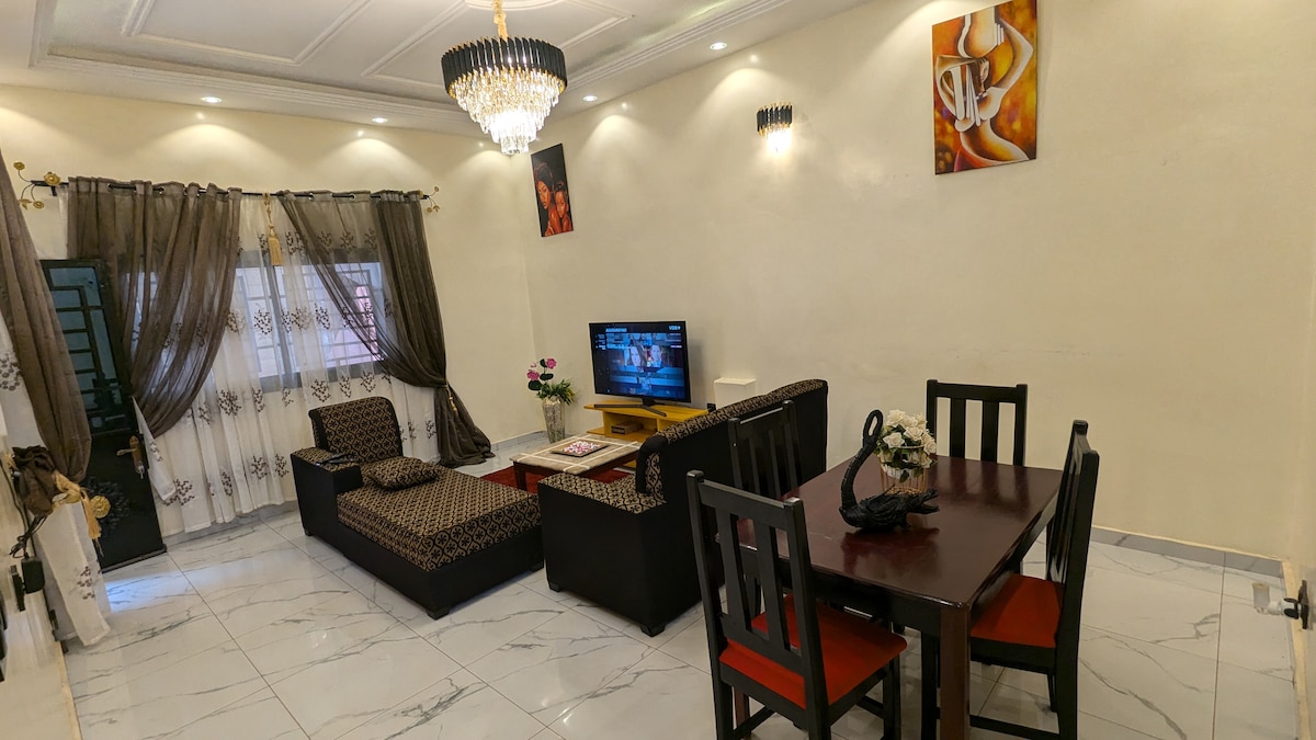 Modern two-bedroom, two-bathroom apartment offering comfort and convenience. Features high-speed Wi-Fi, reliable generator backup, 24/7 security, hot water, and dedicated parking. Located at the entrance of Chefferie Dschang, close to the University of Dschang, the police station, and major transport areas. Ideal for families, professionals, long or short stays.