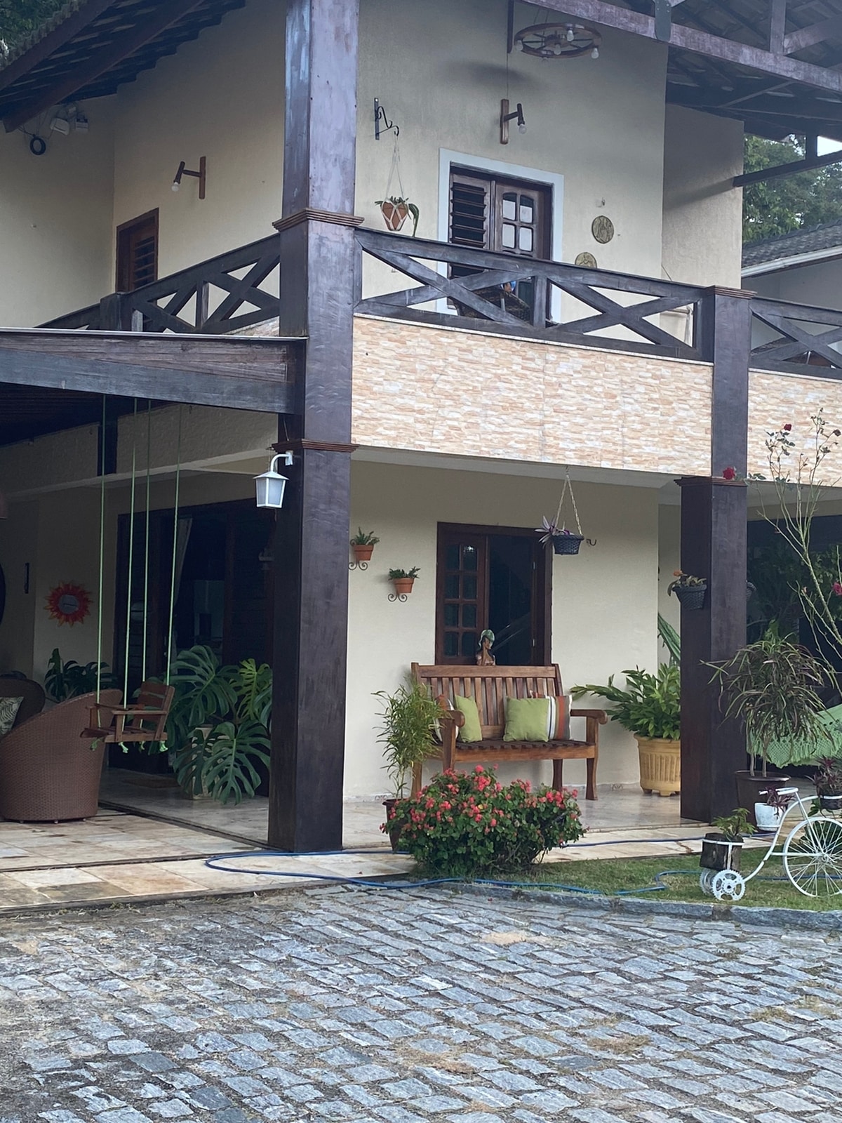 Dispone di piscina, idromassaggio e parco giochi. Ha una fantastica vista sulle montagne perché si trova in cima a una di esse. Si trova all'interno di una foresta nativa molto ben conservata dove predomina il canto degli uccelli. Lo spazio si trova a 5 km dal centro della città di Guaramiranga. È ottimo per coppie e famiglie con bambini, in quanto è sicuro e ottimo per il tempo libero e il riposo. Dispone di 4 suite più una camera da letto, tutte con letto matrimoniale. 10 persone in letti molto confortevoli. Ampio soggiorno/sala da pranzo. TV.