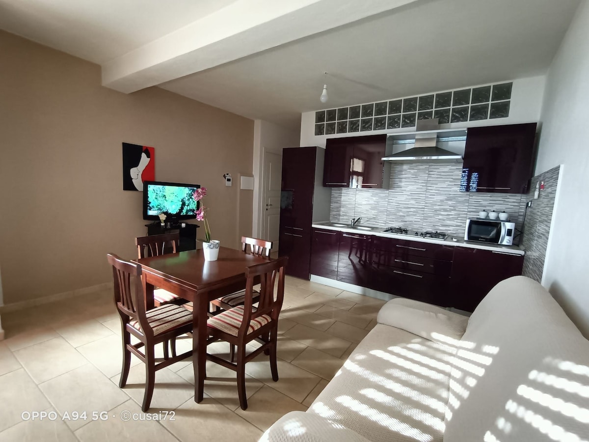 "Appartamento centralissimo, di recente ristrutturazione, composto da 1 camera con letto matrimoniale, aria condizionata, cucina attrezzata con frigo, forno a microonde, macchina da caffé, tv a schermo piatto, lavatrice. Bagno con doccia e phon, ferro e asse da stiro. Piccolo balcone e stendibiancheria. Biancheria inclusa. Parcheggio gratuito se disponibile.