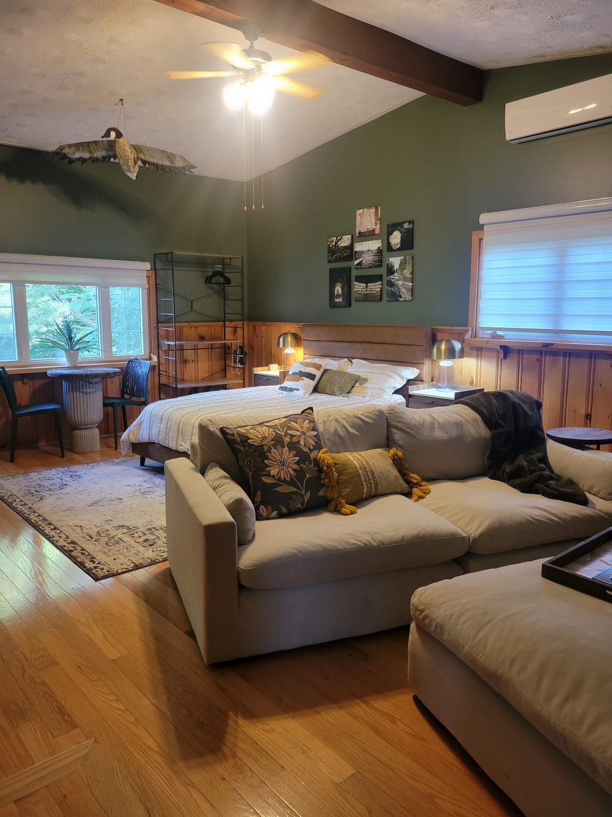Goditi l'accesso esclusivo a questo elegante rifugio privato, caratterizzato da una disposizione spaziosa con una camera da letto con bagno, due camere da letto aggiuntive, una cucina completamente attrezzata e una lussuosa zona giorno a pianta aperta. Progettata per garantire comfort e connessione, questa casa offre stile, calore e completa privacy, perfetta per famiglie o piccoli gruppi che cercano un soggiorno tranquillo e di lusso. **Il piano al livello del giardino può essere occupato da altri ospiti con il loro ingresso separato. Il tuo spazio è completamente privato e non condiviso.