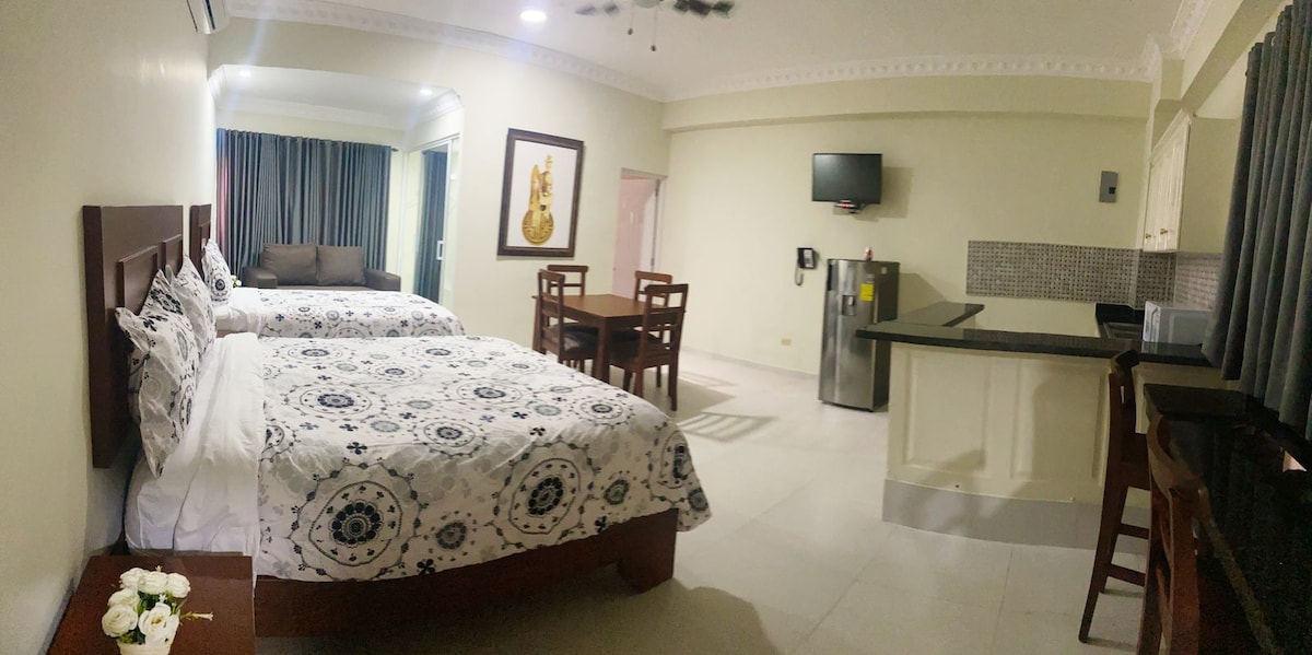 Questa camera d'hotel può ospitare 2 persone. Ha un letto queen-size, una cucina attrezzata e un bagno privato. Include anche l'aria condizionata. La struttura dista 4 minuti a piedi l'accesso alla spiaggia. Situato a Punta Cana, a 250 m dalla spiaggia di Arena Gorda e a 300 metri dalla spiaggia di Bavaro. Si trova a pochi passi da molti ristoranti e bar. Il wifi è un minimo di 50 Mbps in tutta la struttura. Siamo su un vicolo cieco più tranquillo e sterrato. L'elettricità è inclusa nel soggiorno, senza costi aggiuntivi.