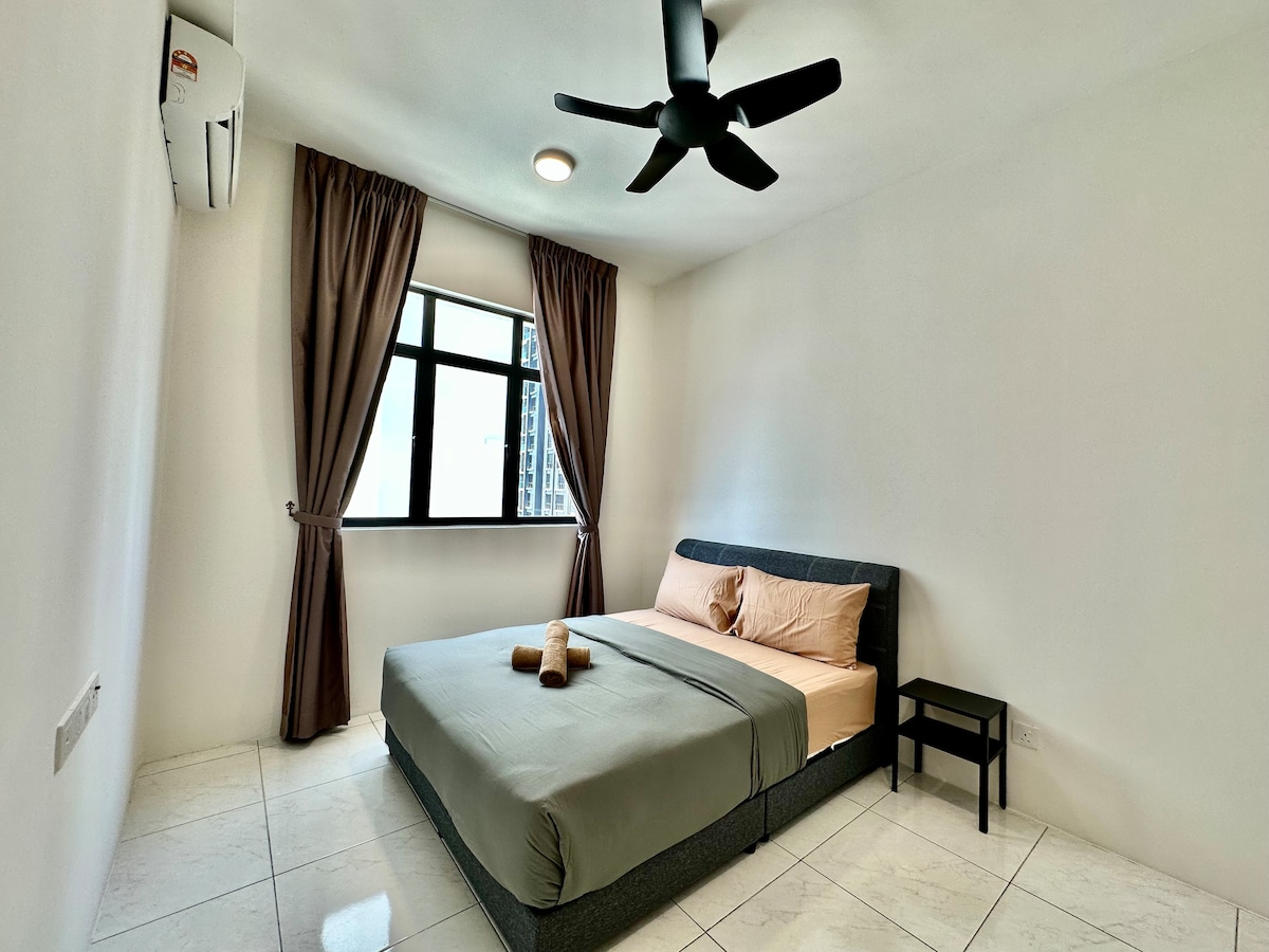 Questo appartamento si trova a Bayan Lepas, Penang. Vicino all'aeroporto di Penang, allo stadio Spice Arena e all'ospedale Pantai. L'edificio è sotto sorveglianza 24 ore su 24. Gli ospiti possono accedere a - Aeroporto di Penang - 3-5 minuti - Spice Arena: 7-10 minuti - Ospedale Pantai - 7-10 minuti - Queensbay Mall - 12-15 minuti - Ikea Batu Kawan - 30 minuti - Georgetown a 20-30 minuti